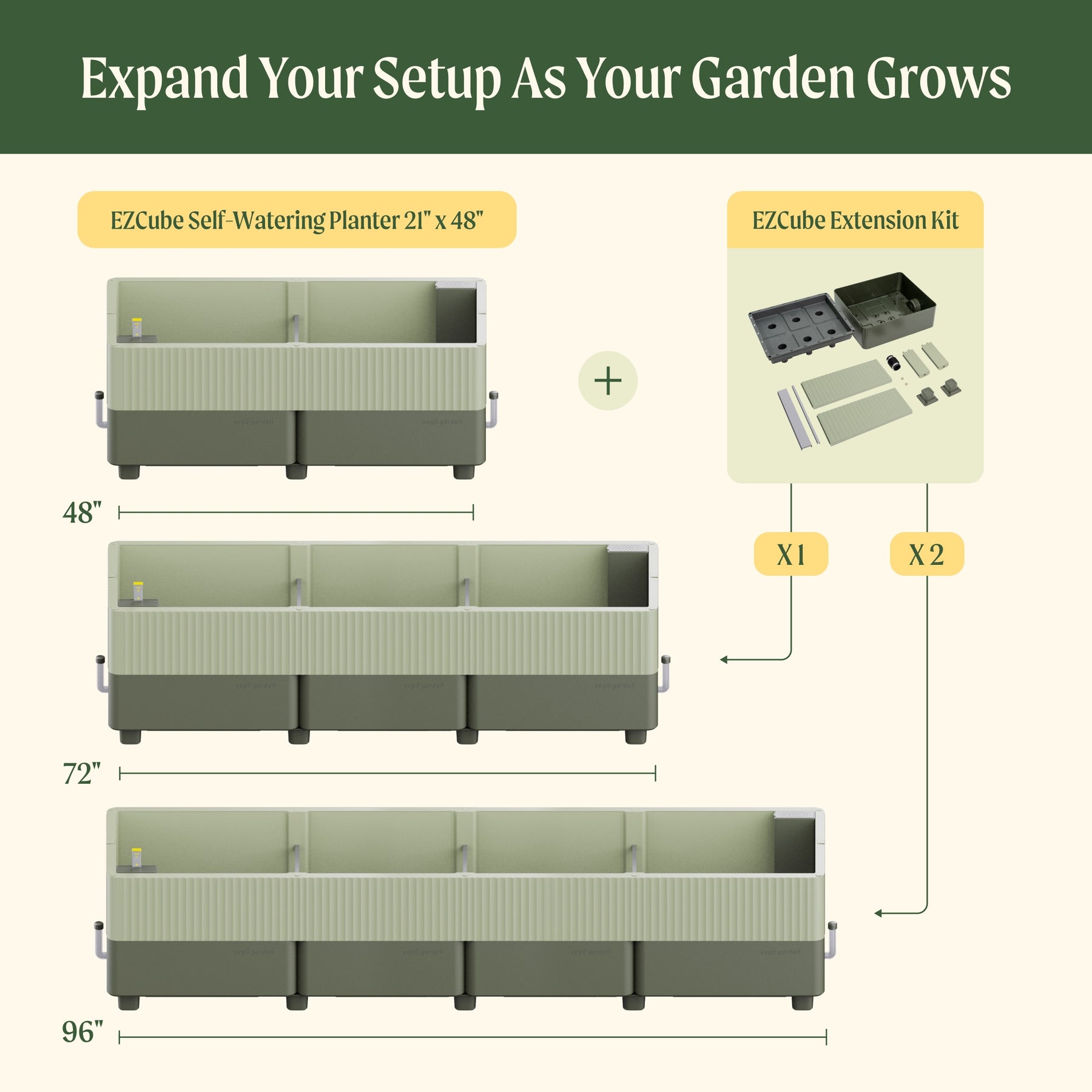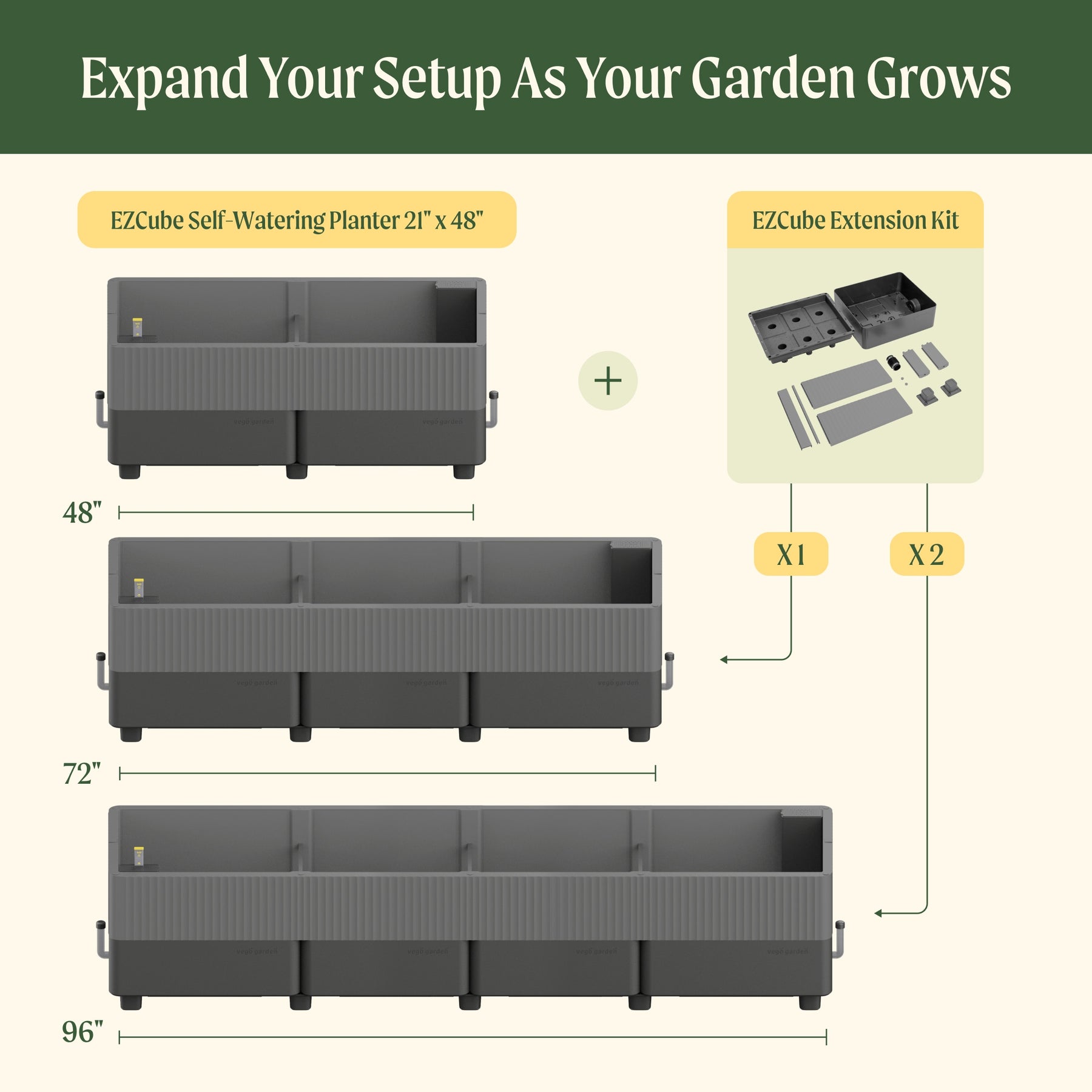 Yes, the Extension Kit is compatible with both the 21" x 24" and 21" x 48" EZCube planters. However, for a better experience and easier installation, we recommend pairing it with the 21" x 48" model. If you're considering extending a 21" x 24", it's often more practical to start with a 21" x 48" planter instead.