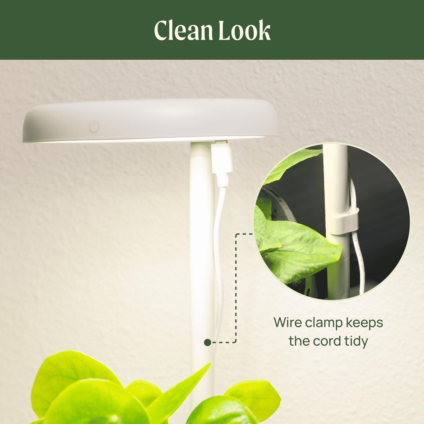 A single wire clamp keeps your cord neatly tucked along the stand for a clean, modern look—no tangles, no distractions. Simple design, beautiful results.