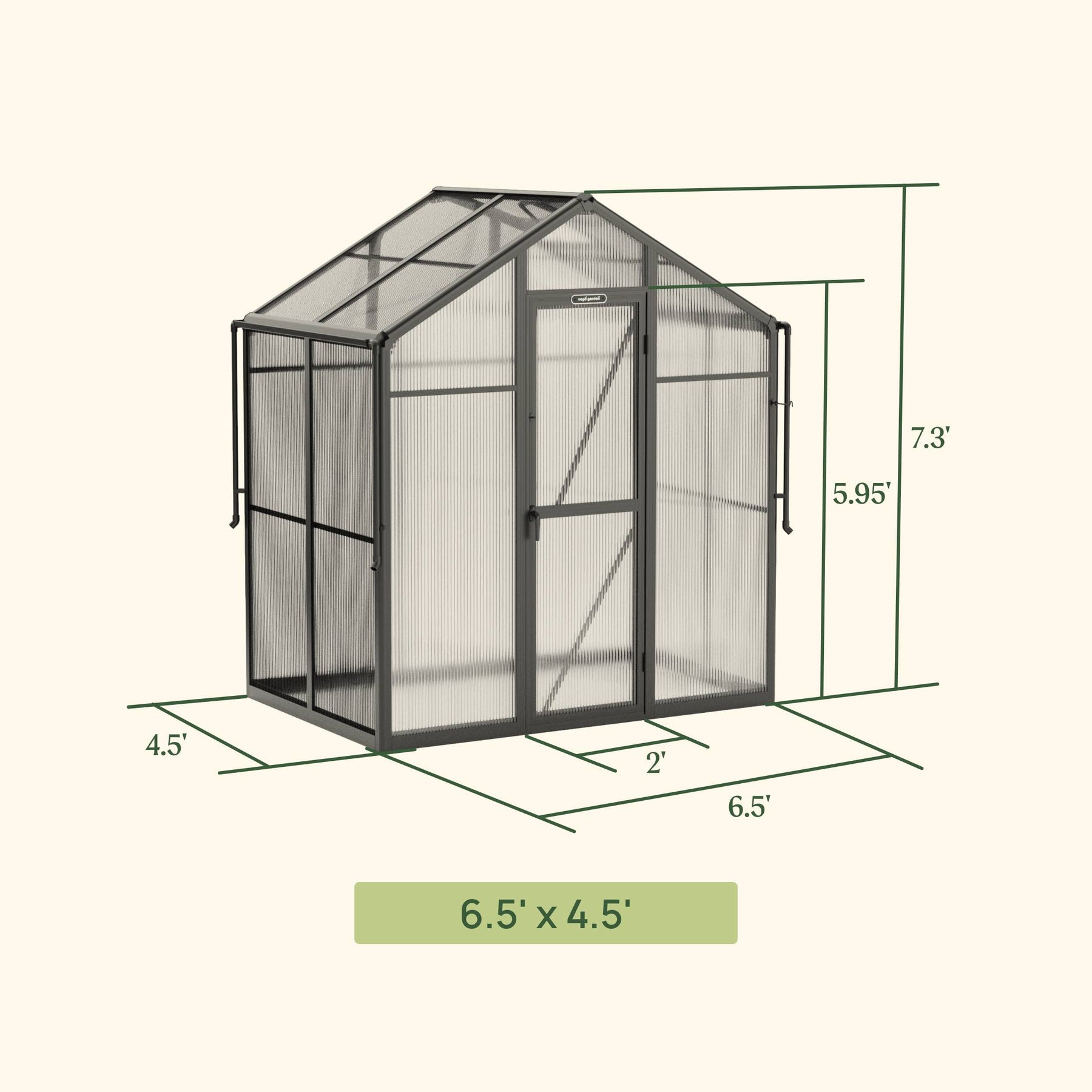 A smaller greenhouse (7.3ft peak height) with the same strong bones as our full-size models—for lasting support in a smaller space