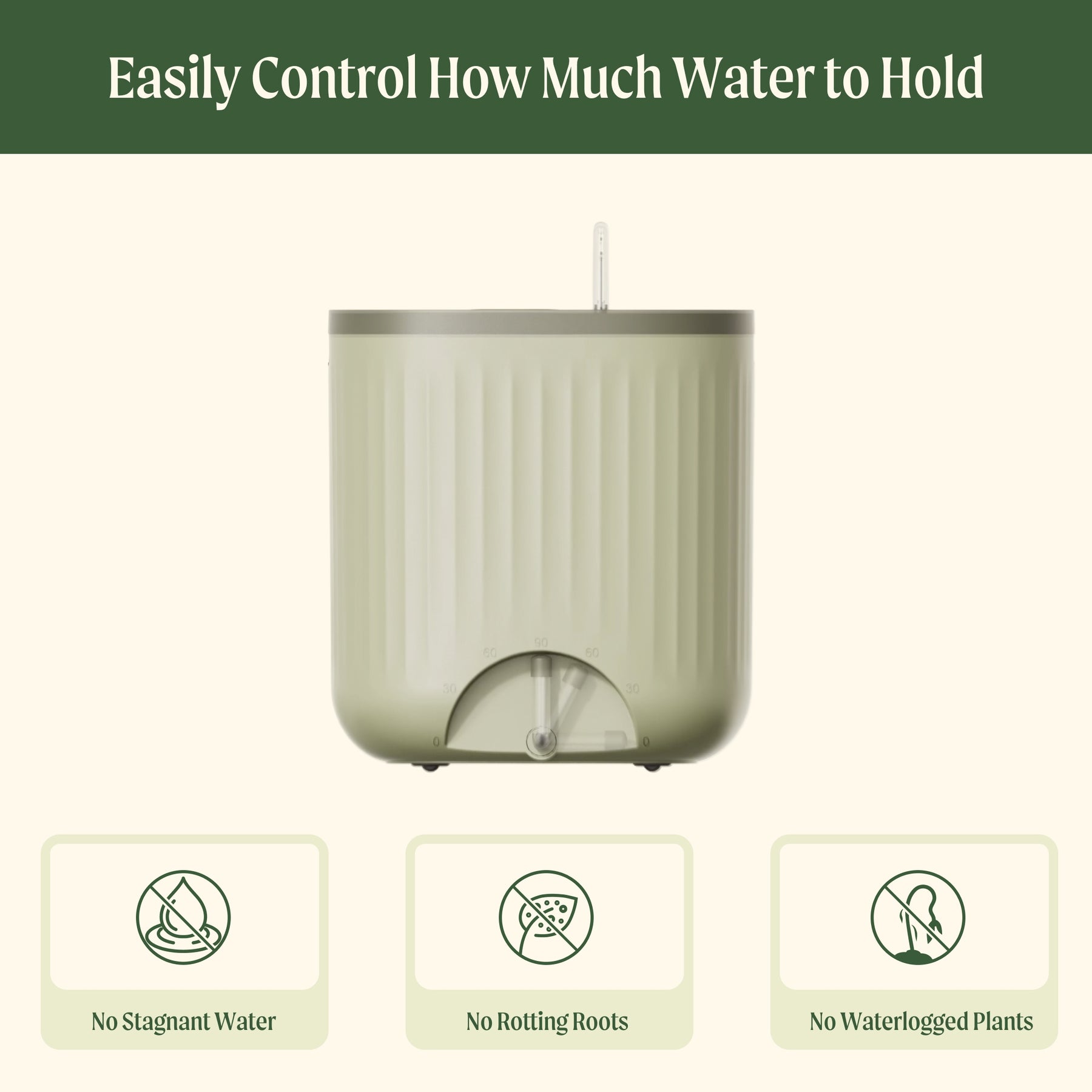 During the first few weeks, it may be necessary to water from the top as you normally would in a regular planter. This deep, thorough watering encourages roots to grow downward toward the reservoir where the wicking action can take over. At this point you can rely on the self-wicking function to make sure your plant has the moisture it needs.