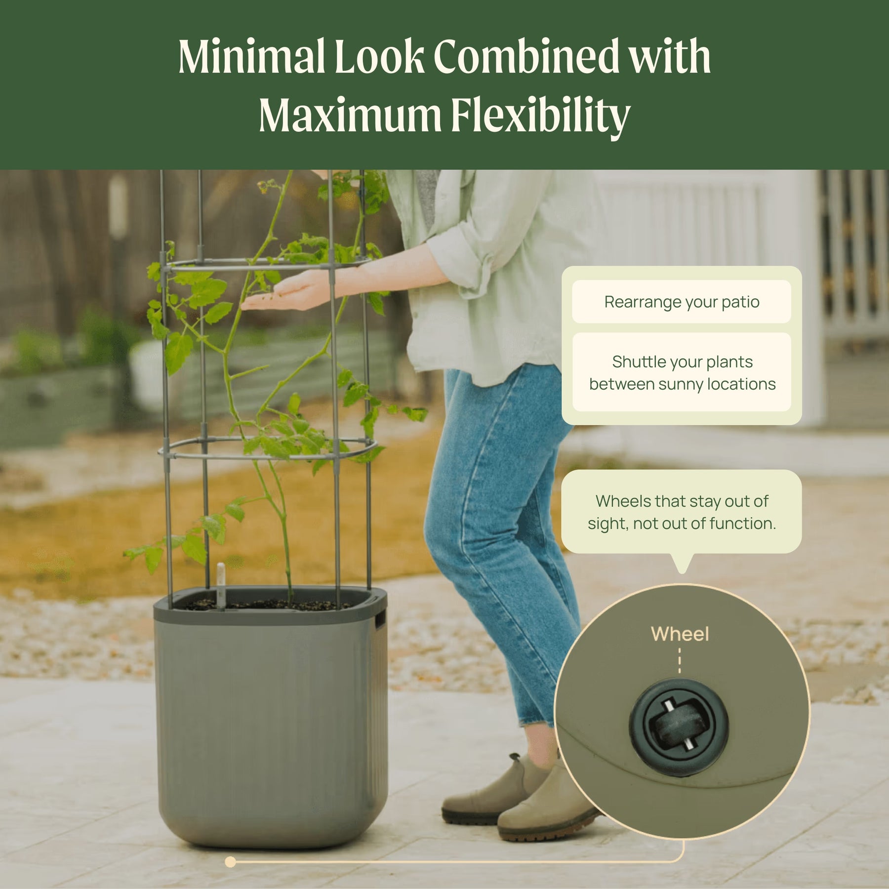 With a curved trellis designed specifically for this planter, your tomato plant can grow to its fullest potential!