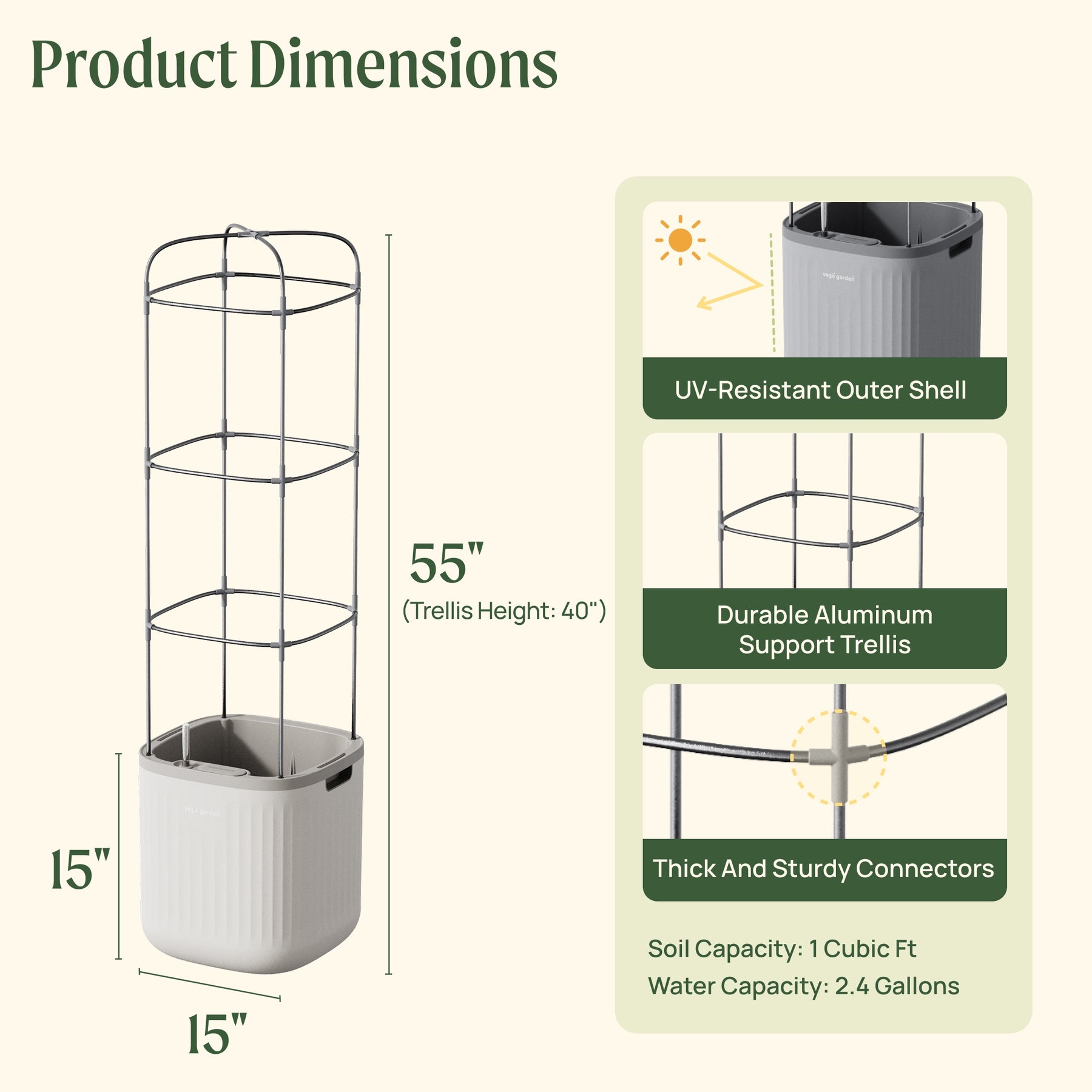 Personalize your planter to suit your growing needs! Adjust the height of your trellis depending on