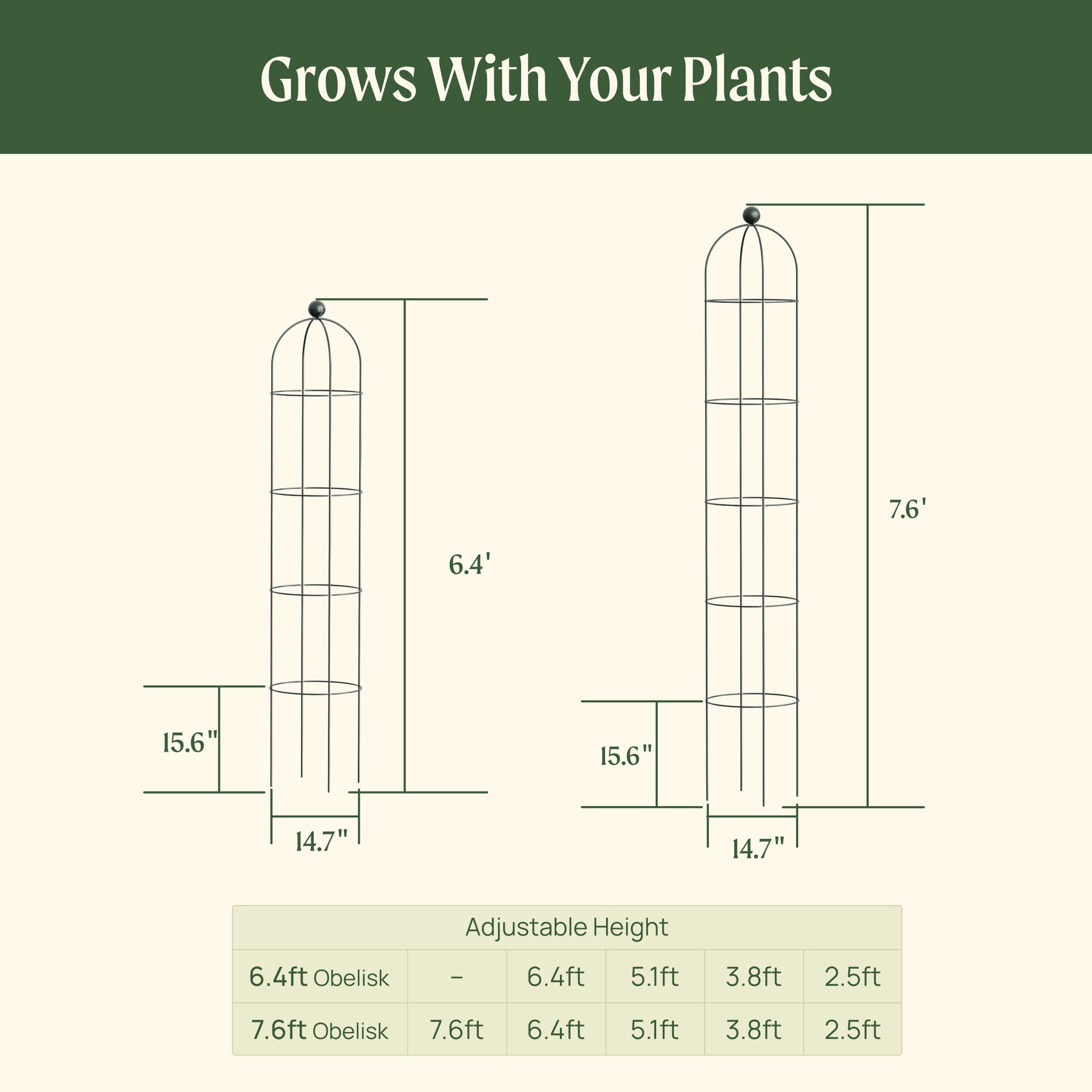 Adjustable height means your trellis can grow as your plant does, offering support where the plant needs it most, no matter the stage of growth.