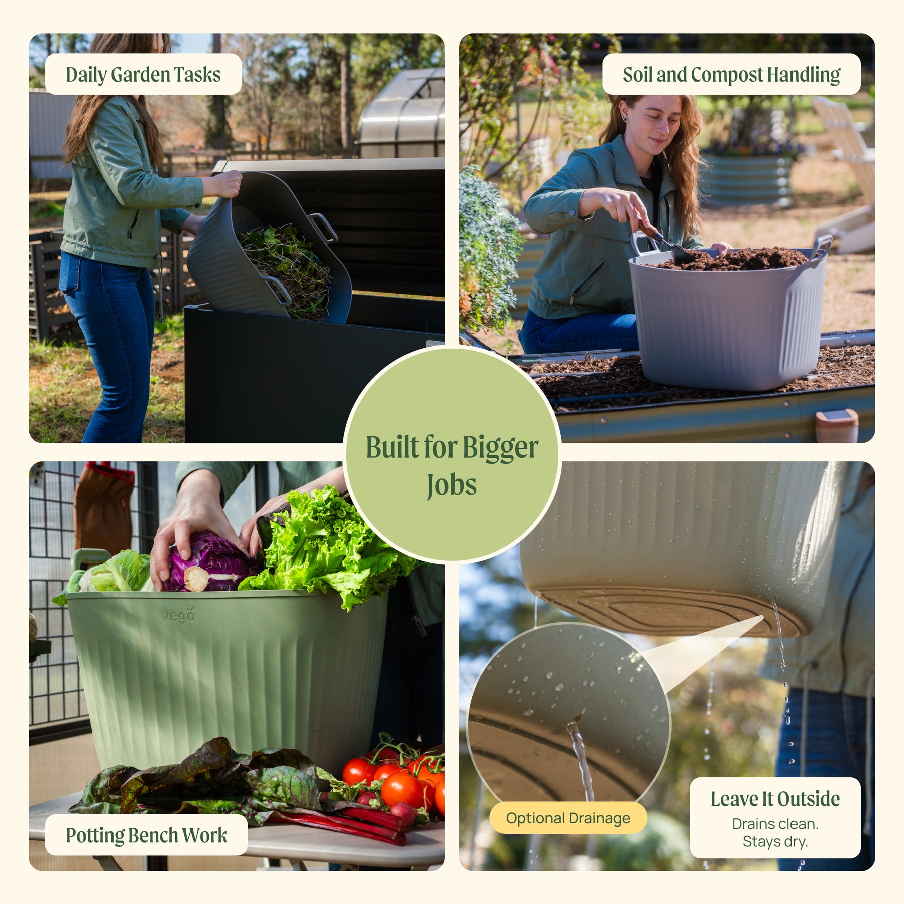 It's ideal for garden cleanup, soil and compost handling, moving branches or leaves, and shared workspaces like greenhouses or potting areas.