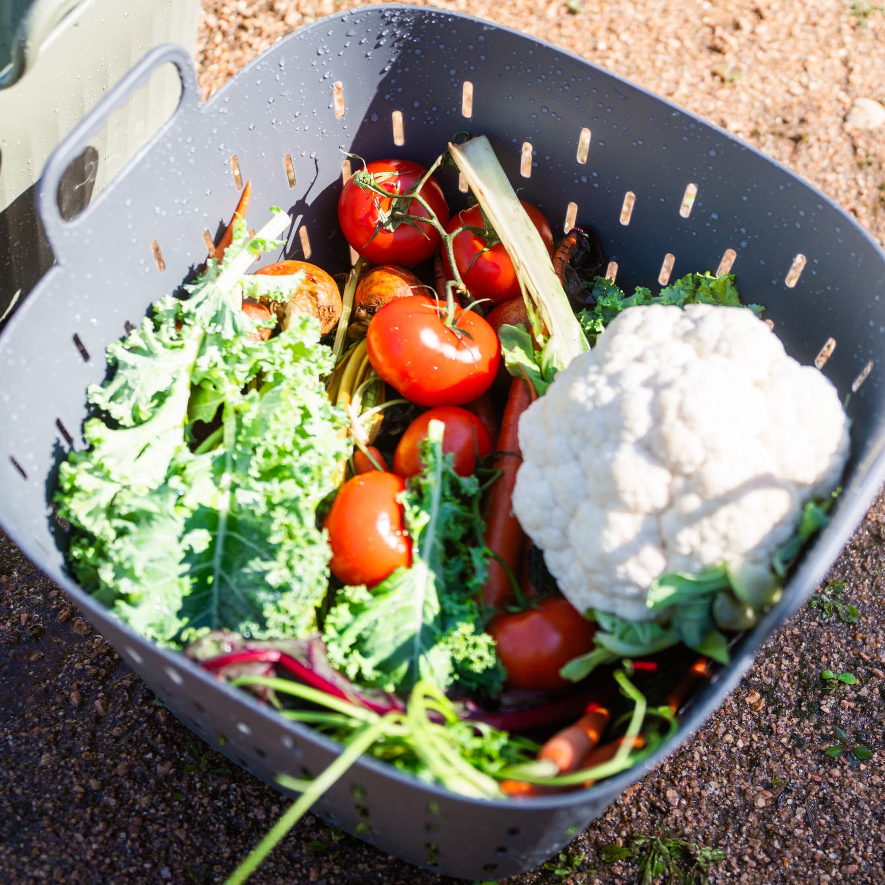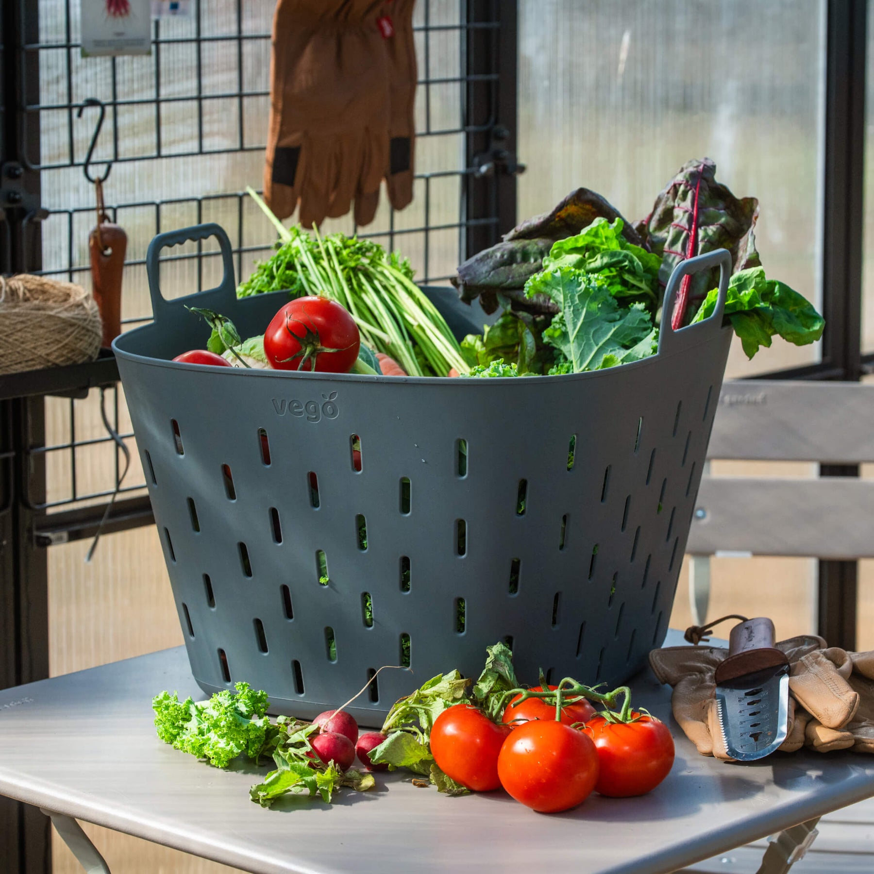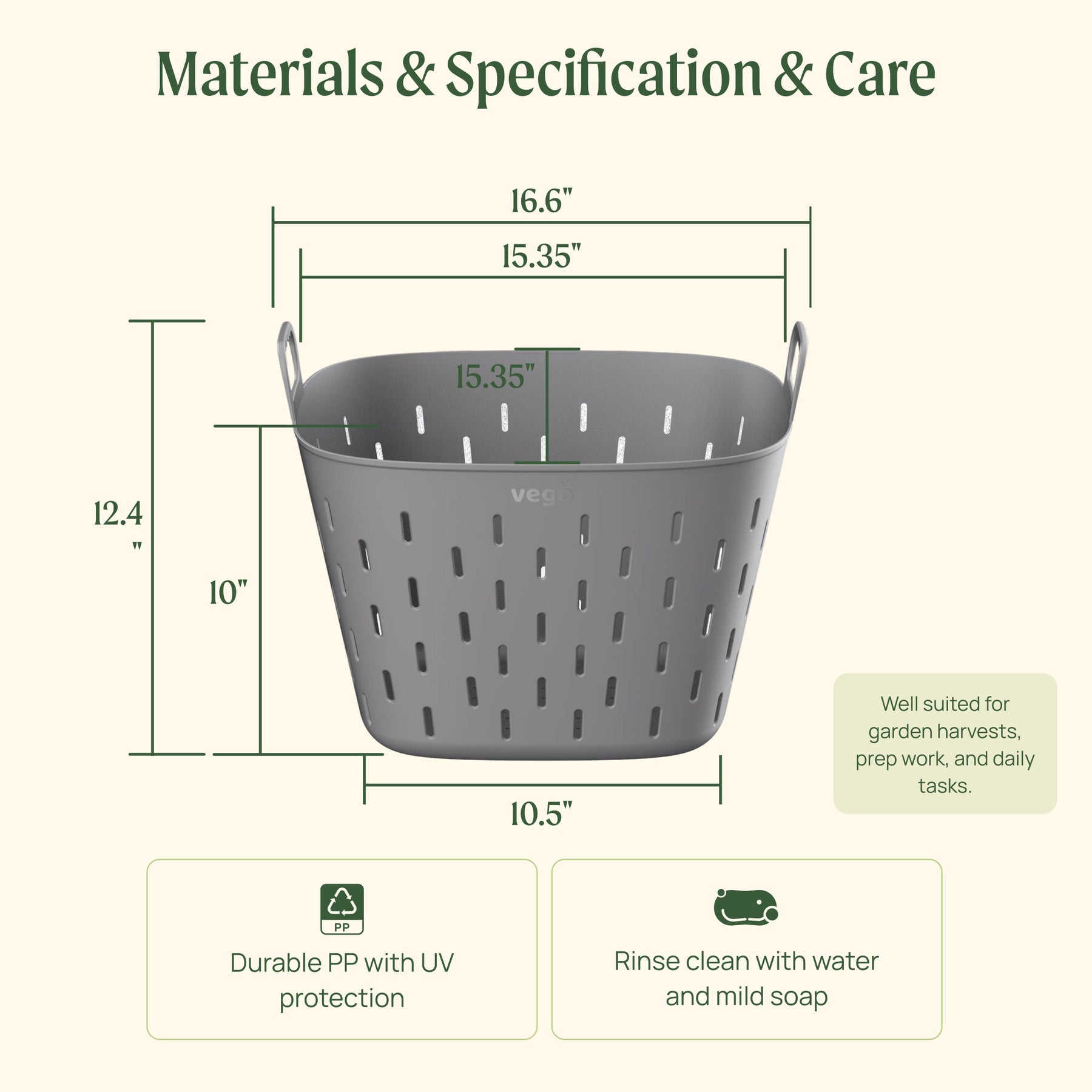 The Strainer Basket is designed for harvesting, rinsing, draining, as well as breathable, temporary storage of produce and garden materials.