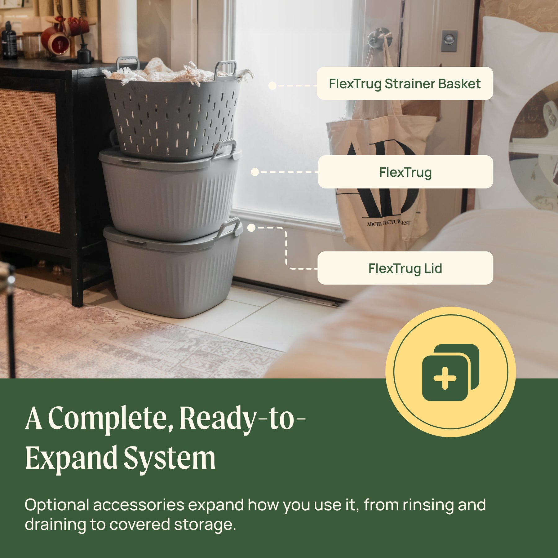 Optional accessories expand how you use it, from rinsing and draining to covered storage.