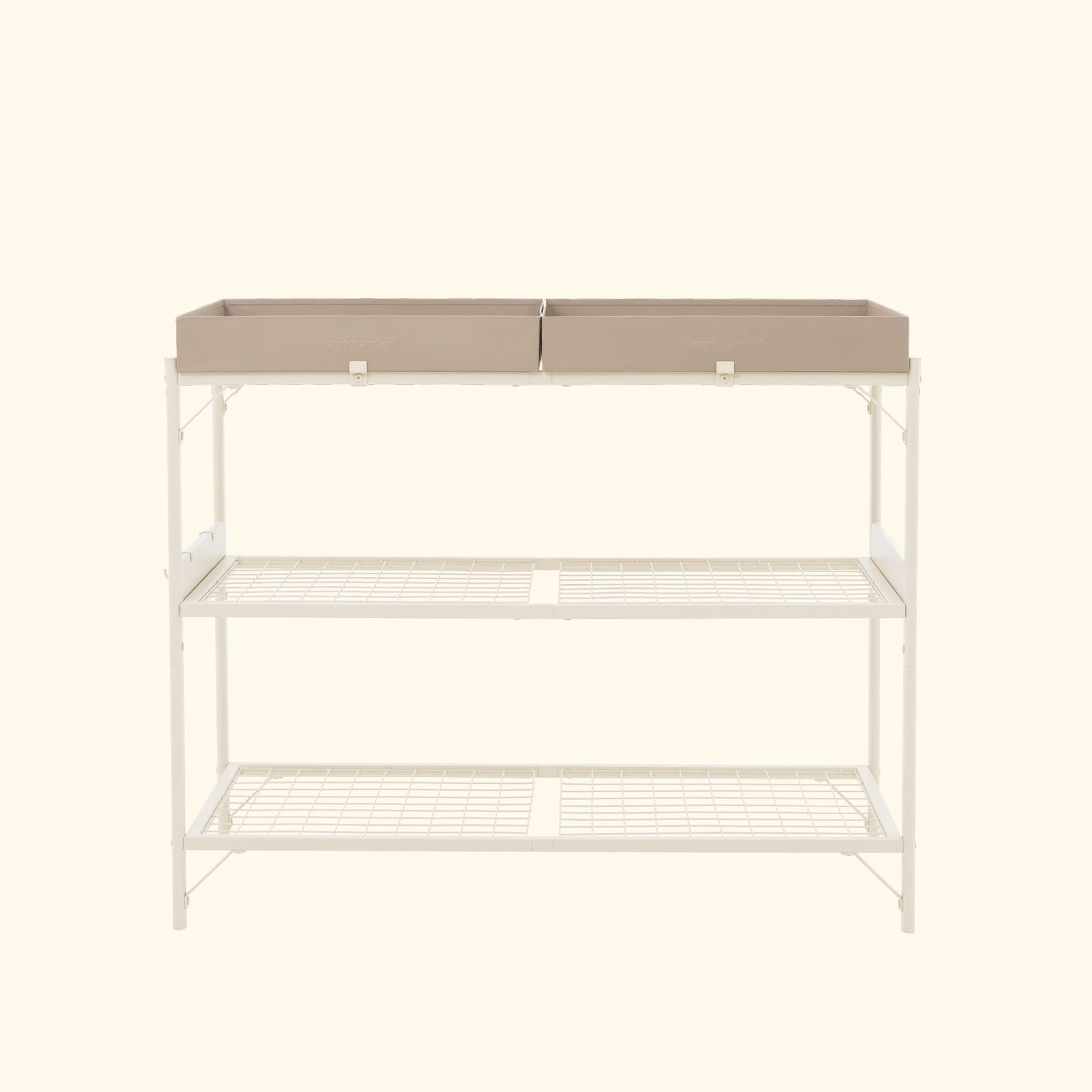 Use two shelves for maximum storage, or remove the middle shelf to create room for taller items — no tools required.