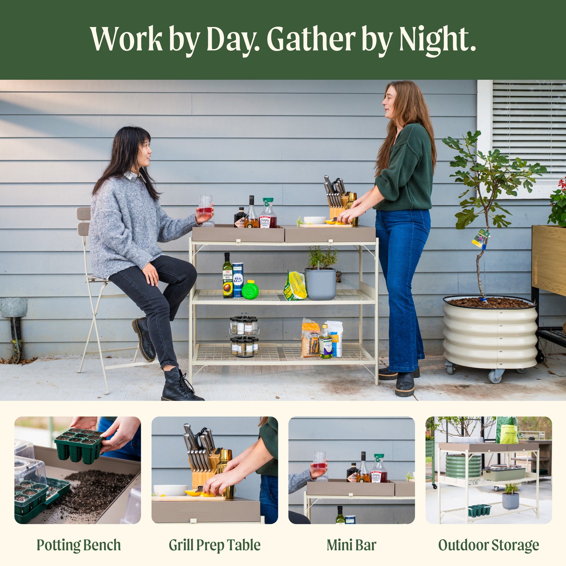 Turn any space into a cohesive setup where planting, storing, and even entertaining all come together with the Potting Bench Series.