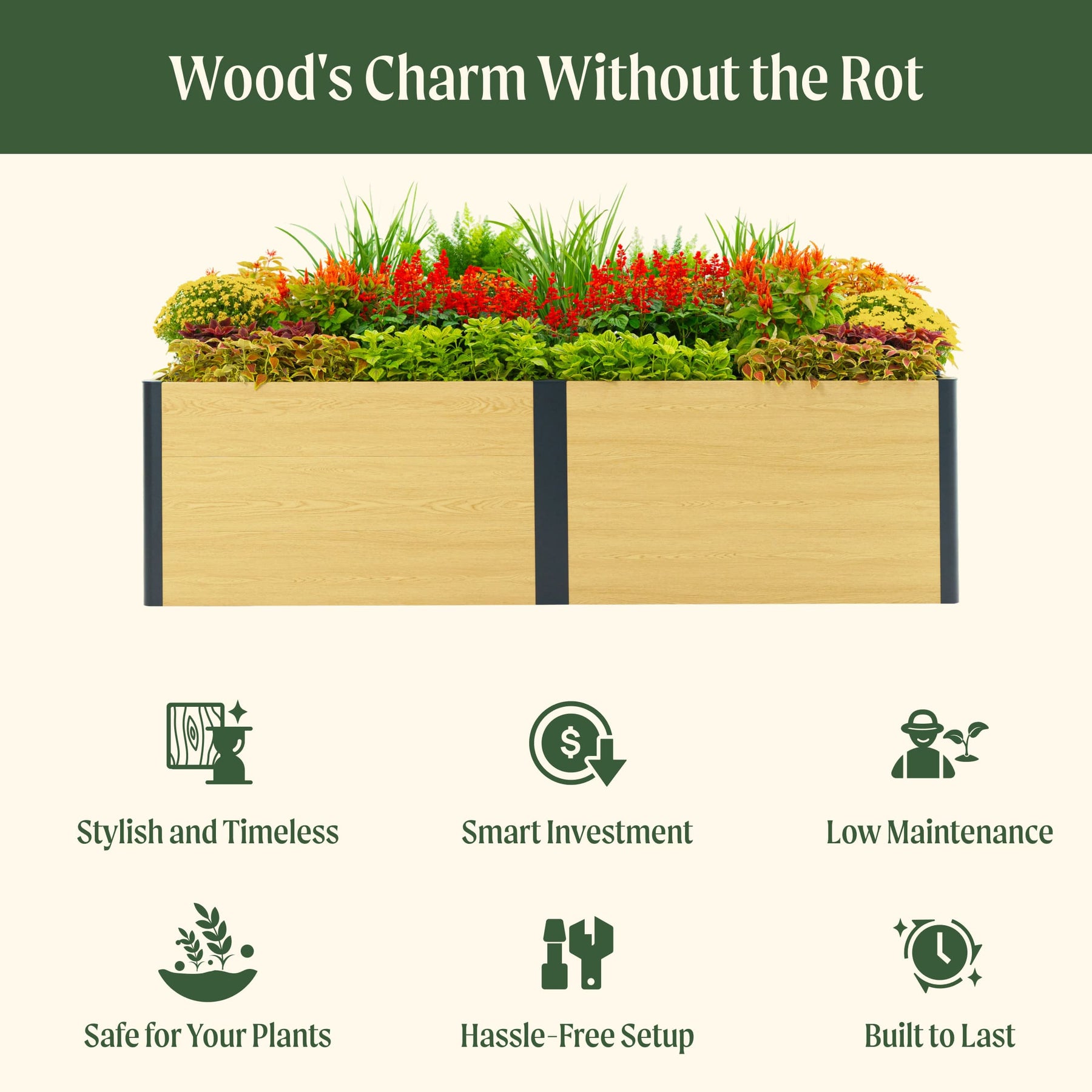 The woodgrain finish brings warmth and charm to your garden, pairing natural style with a layout that elevates your space.