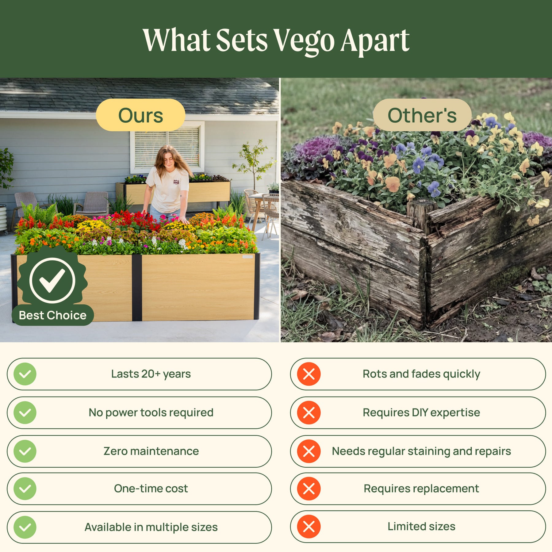 When choosing a brand or type of raised garden bed, you should take into consideration the durability and longevity that you want for your bed. Vego Garden is the industry leading brand in modular metal garden beds, utilizing the best material and hardware in their designs and offering bigger and better choices than their competitors.