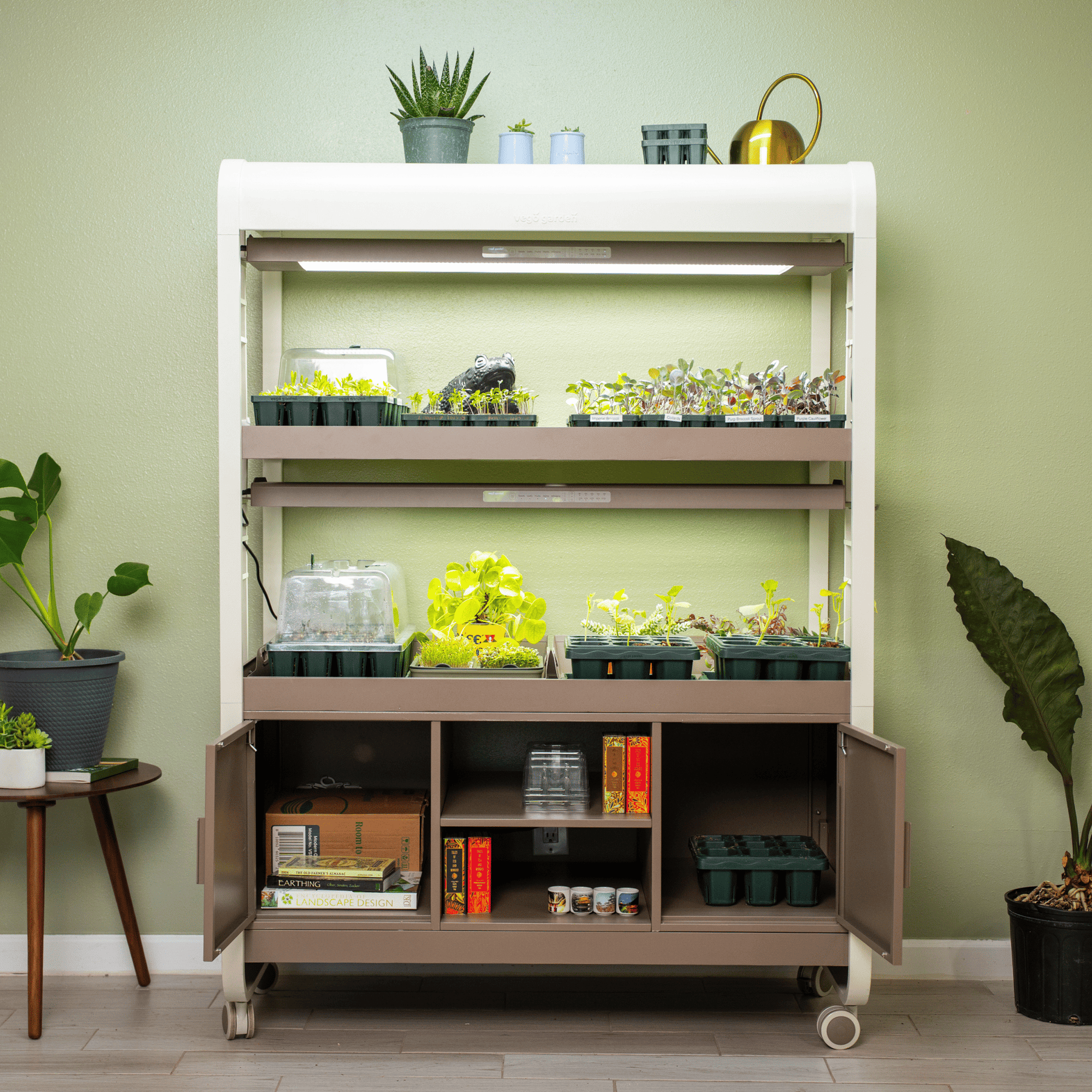 Built-in storage keeps soil, tools, and supplies organized and protected—so everything you need stays