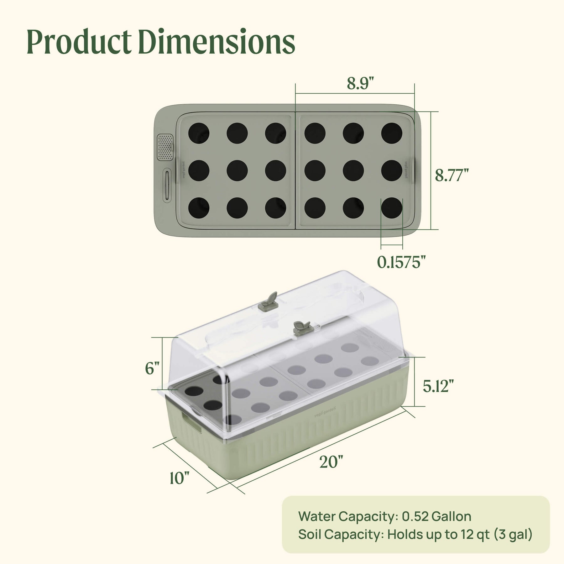 Soil Capacity: Holds up to 12 qt (3 gal) of your preferred soil blend