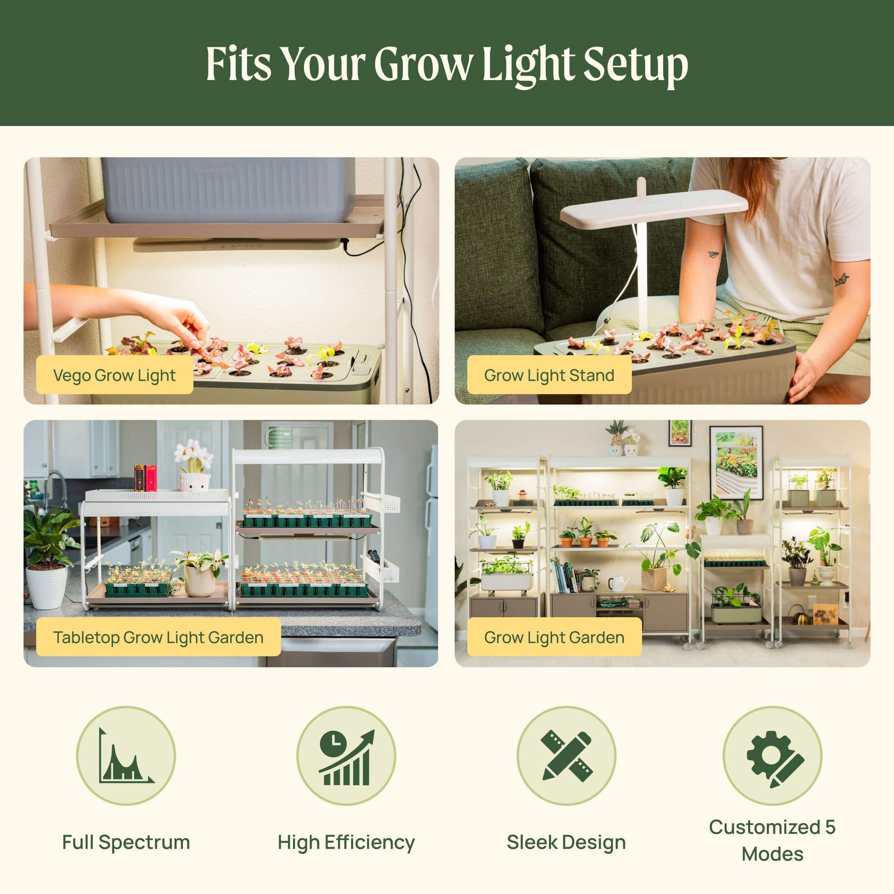 Leafy Mode – Designed for lush, vibrant growth with a built-in 16-hour light cycle and 20W output to