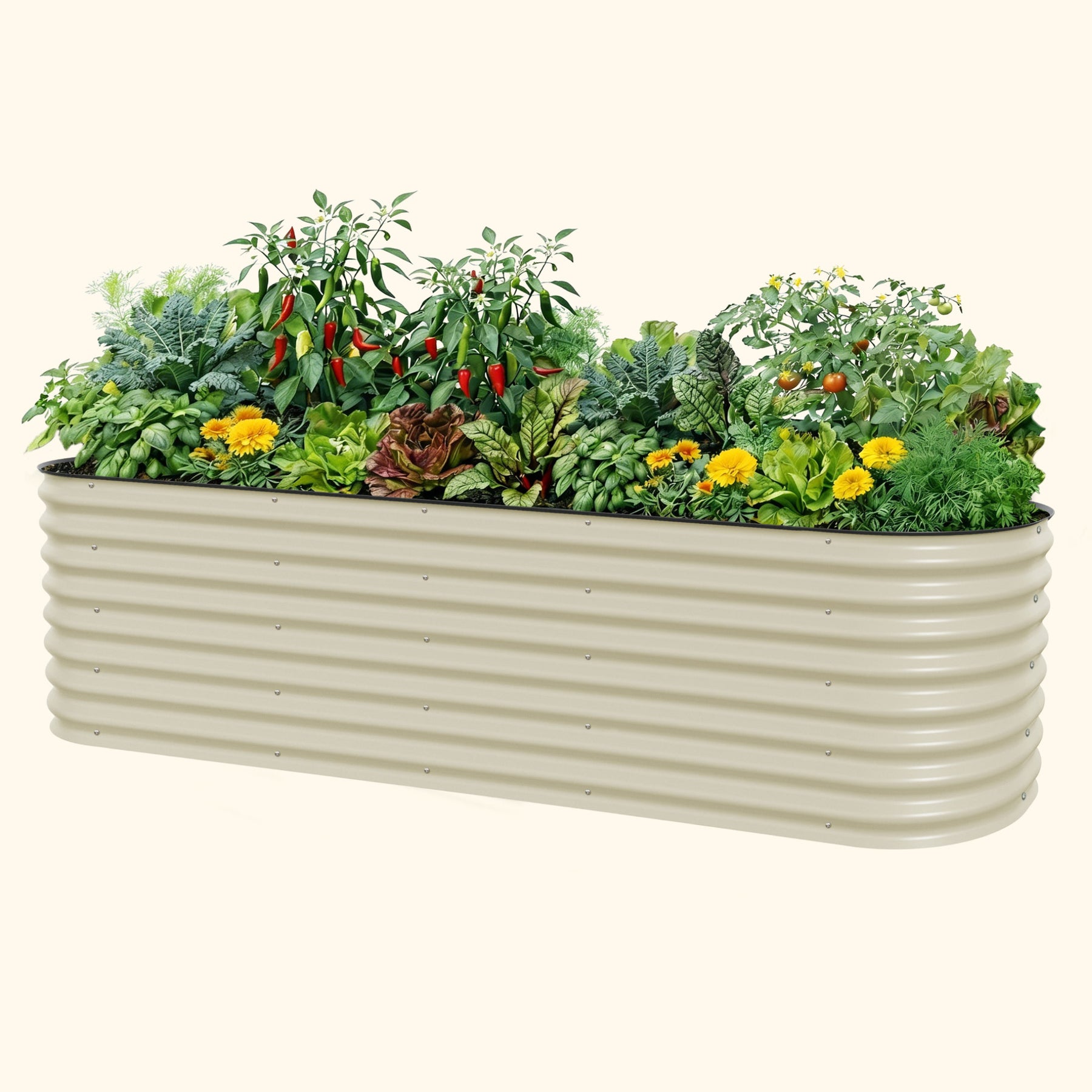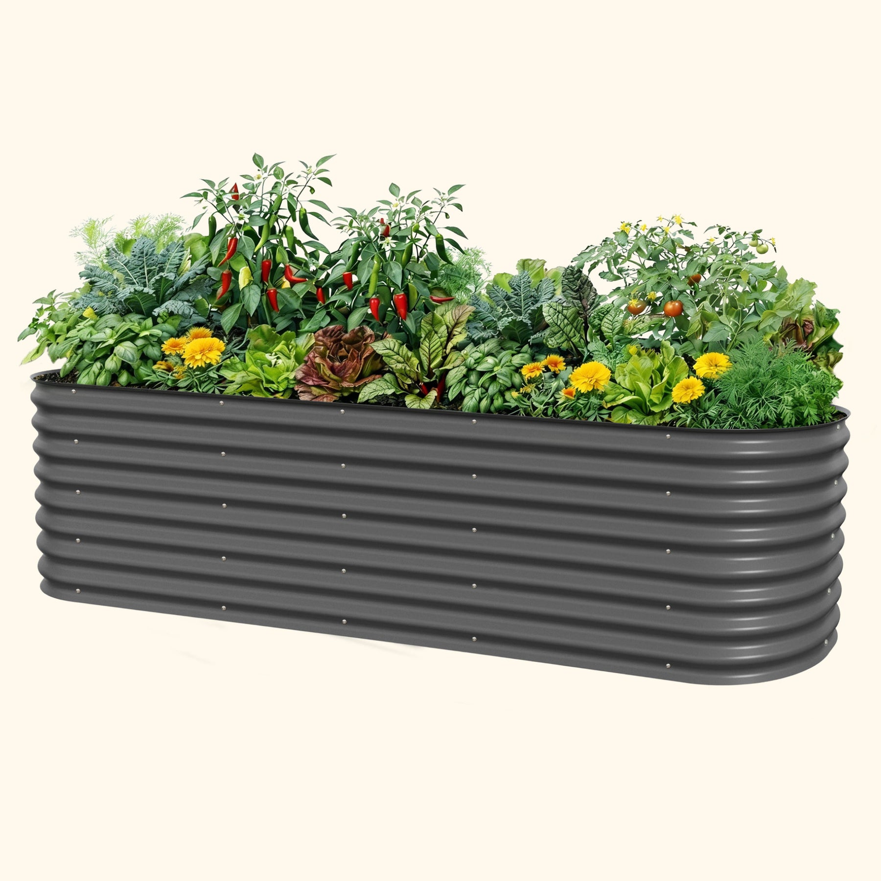 Our raised beds are safe to grow vegetables, fruits and other edible plants in. While treated wood and plastic degrade under extreme temperatures, Aluzinc steel will not leach chemicals into plants or soil. This helps maintain the highest quality soil for organic gardening. Aluzinc steel provides superior performance and corrosion resistance under numerous environmental conditions. The metal and paint used to construct our beds will not leach any harmful contaminants into the soil.
