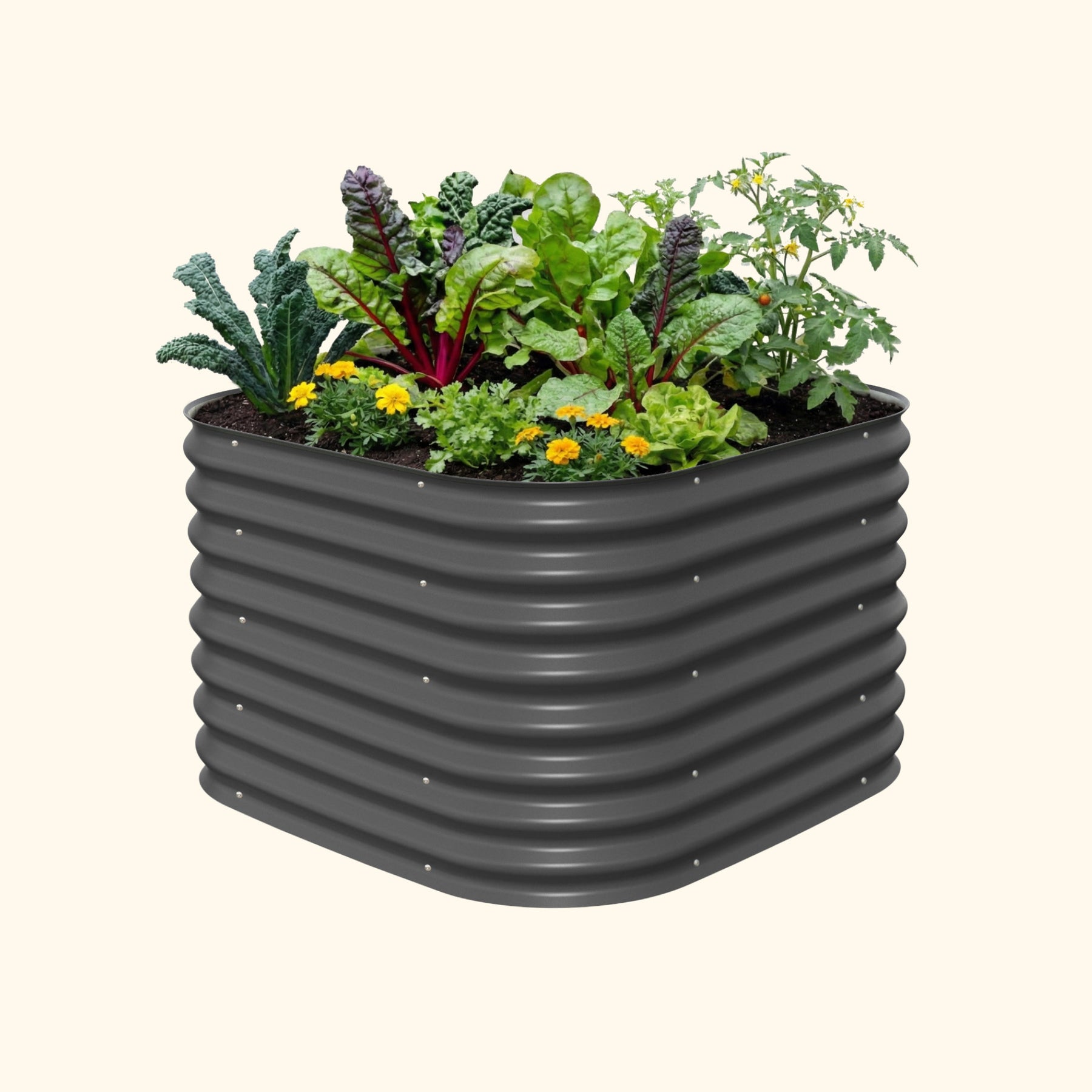 Our raised beds are safe to grow vegetables, fruits and other edible plants in. While treated wood and plastic degrade under extreme temperatures, Aluzinc steel will not leach chemicals into plants or soil. This helps maintain the highest quality soil for organic gardening. Aluzinc steel provides superior performance and corrosion resistance under numerous environmental conditions. The metal and paint used to construct our beds will not leach any harmful contaminants into the soil.