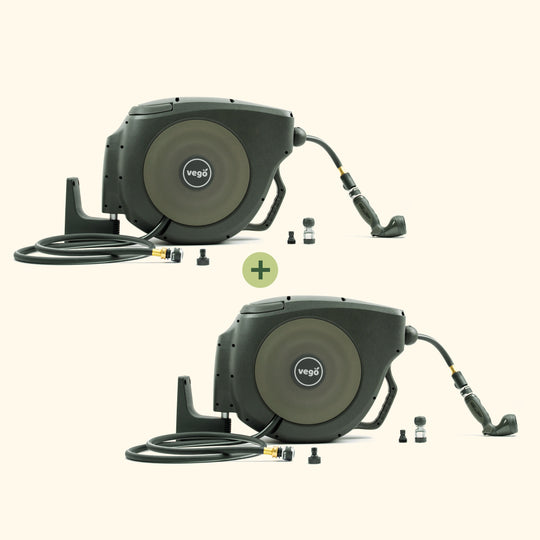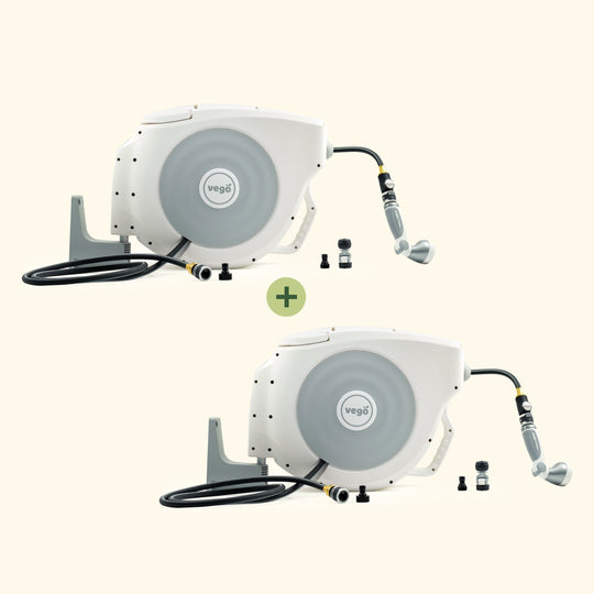 Get a double dose of our Retractable Hose Reel Set, built to tackle all your watering needs. With steady, safe retraction, they are designed to conveniently store your hoses without clutter.