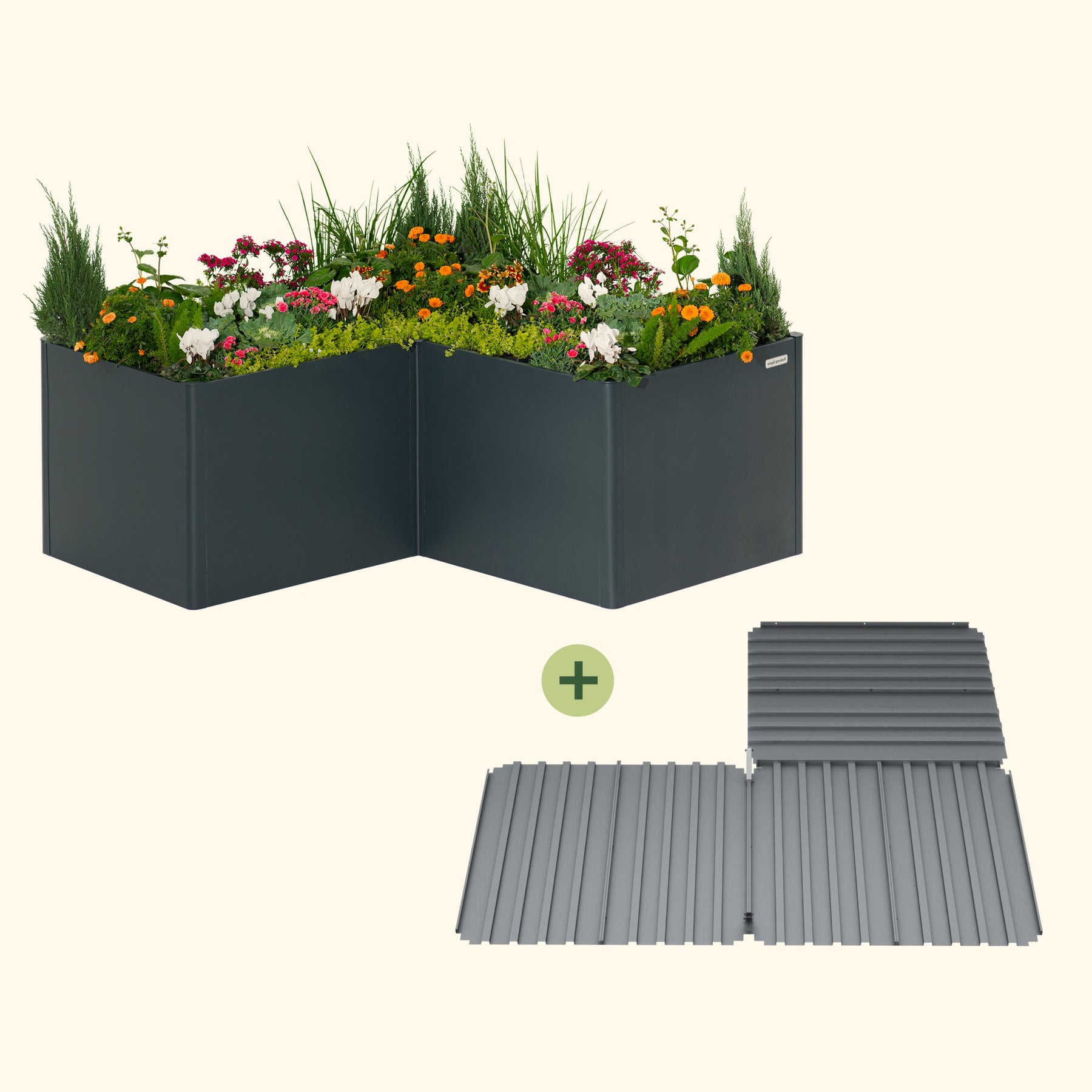 32" Tall Modern 83" x 83" L Shape Metal Raised Garden Bed
