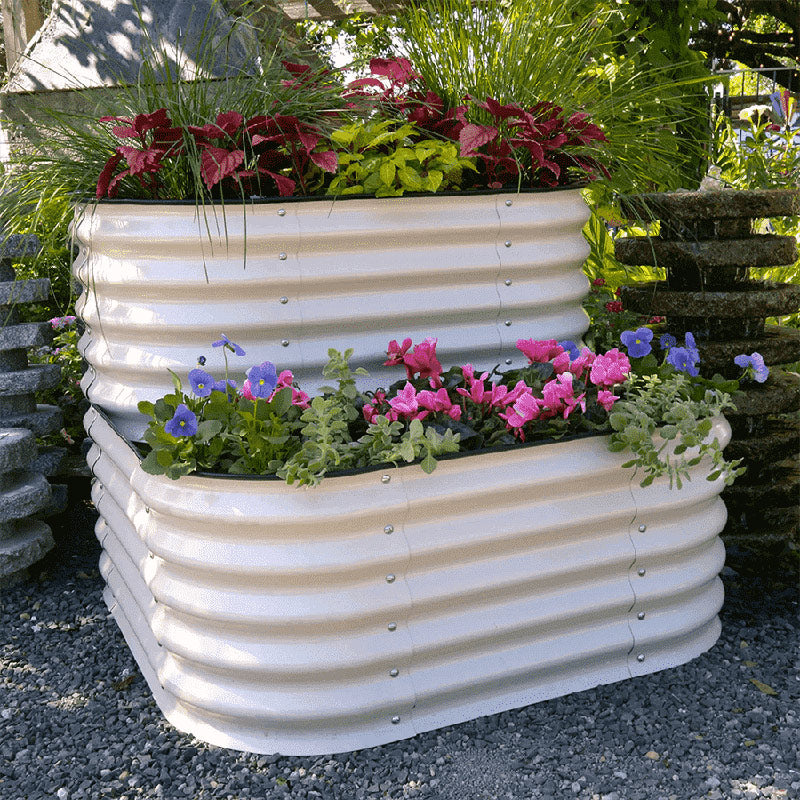 Named for the graceful tumbling of a waterfall, our Cascading Bed is a tiered raised garden bed that offers two heights in one. We designed this garden bed to offer an elegant configuration that combines the functions of our 17" and 32" Series, all in one compact 3.5ft x 3.5ft footprint. You can grow your deep-rooting plants in the taller section, and plants which require less depth in the front. The Cascading Bed is also well suited for displaying beautiful trailing plants, as the shape of the bed will allow plants to spill safely over the edge. The tiered design lends itself well to placement in an entryway, to warmly welcome guests through your front door or garden gate.