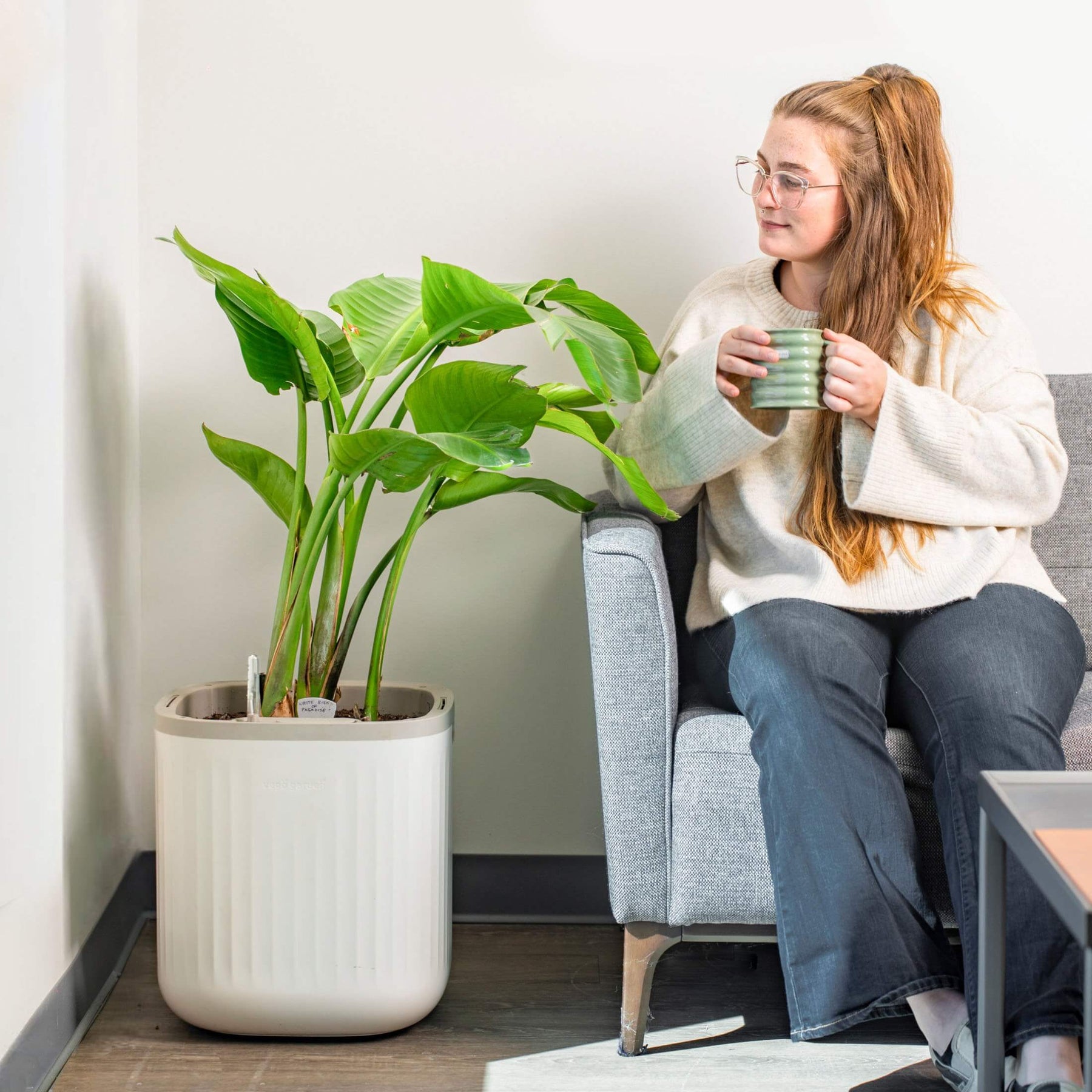 Our innovative watering system is a fantastic solution for delivering water to your plants without having to worry about overflow. Fill it once to water your plant for several weeks!