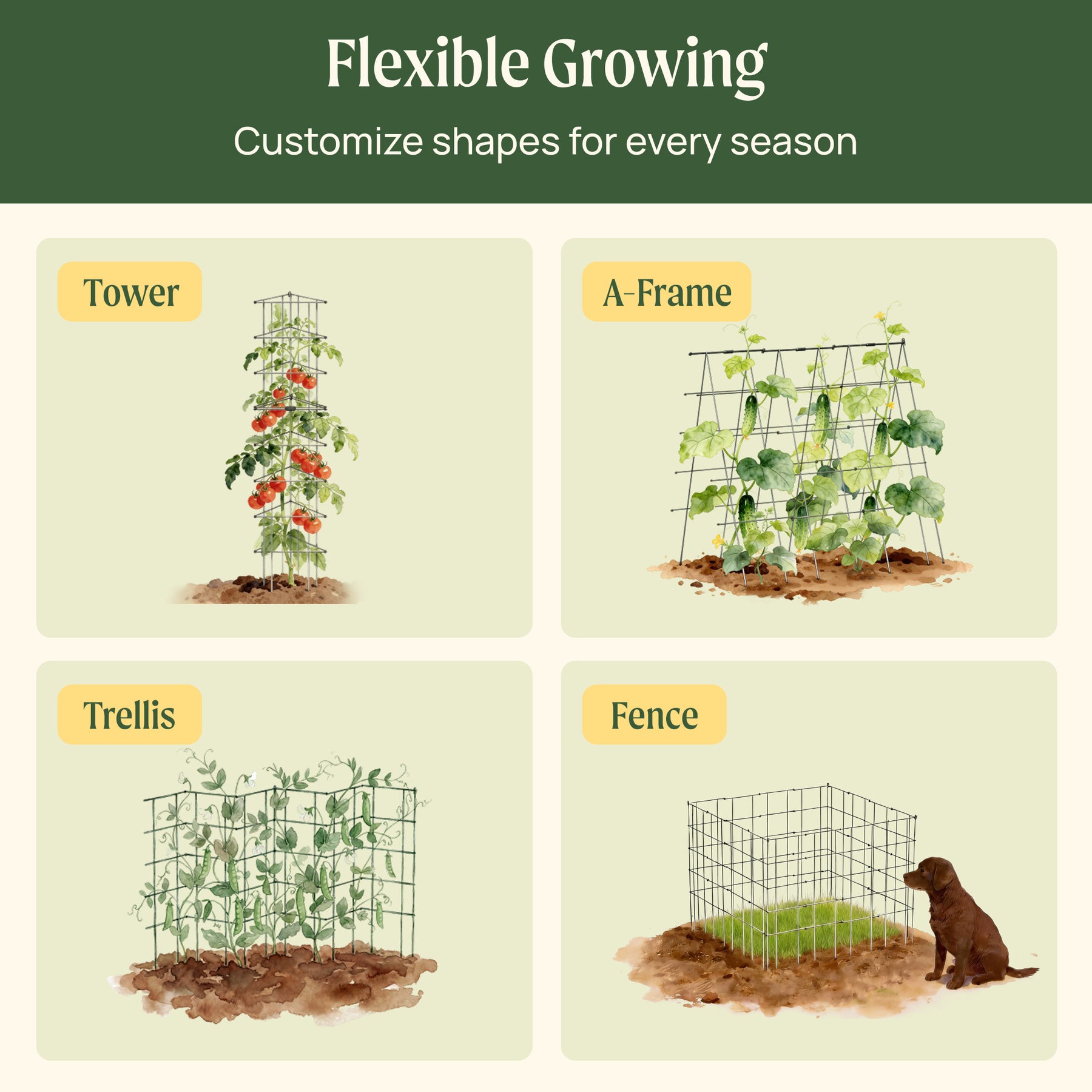Use the included connectors to stack cages as your plants grow, giving young plants early support and