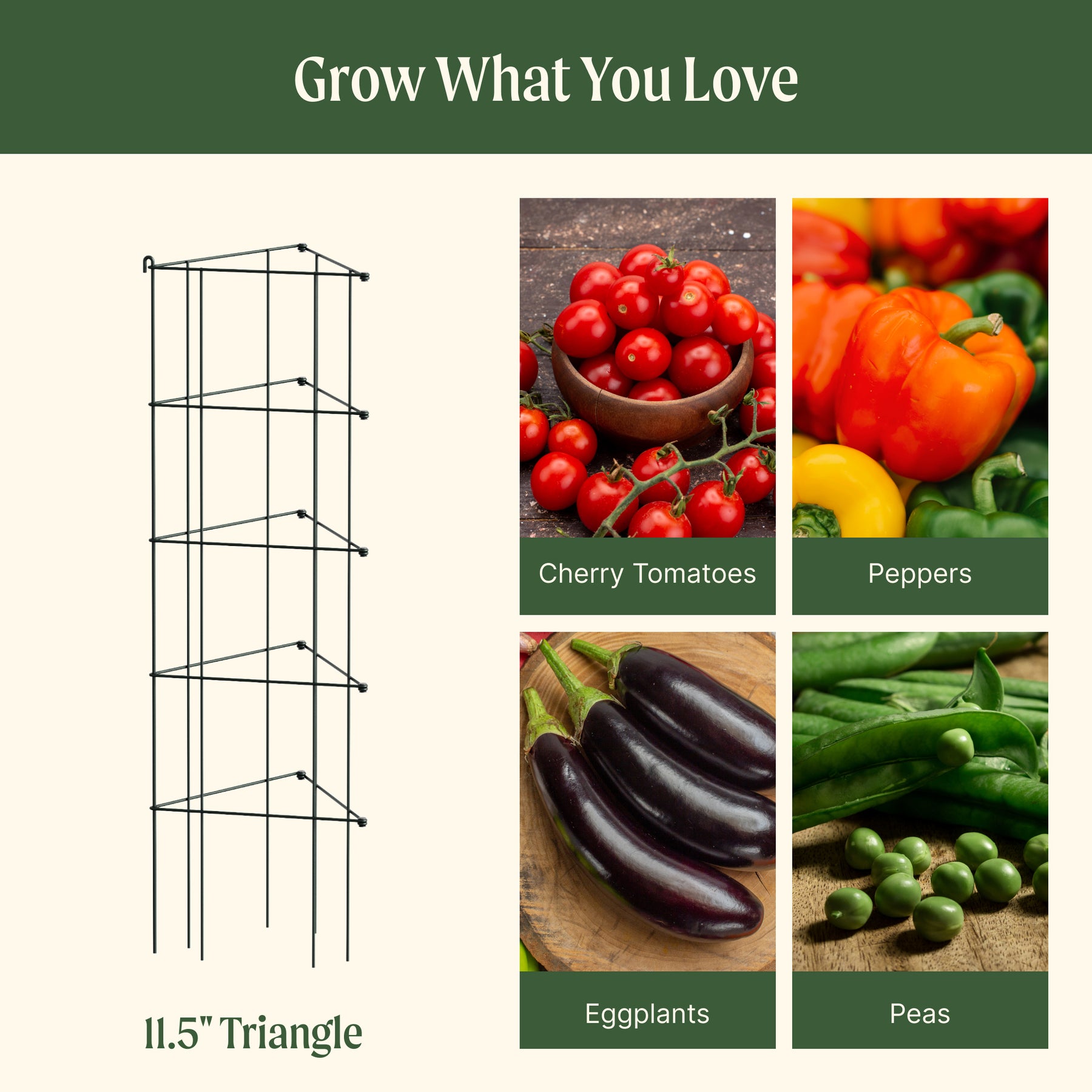 11.5" cage – Ideal for small plants such as cherry or compact tomatoes, peppers, and eggplants. Best for lighter growth and smaller spaces. 14.5" cage – A great all-around choice for most medium tomato varieties, beans, offering dependable support throughout the season. 16.5" cage – Designed for large, vigorous plants, including indeterminate (vining) tomatoes that keep growing taller and heavier over time.