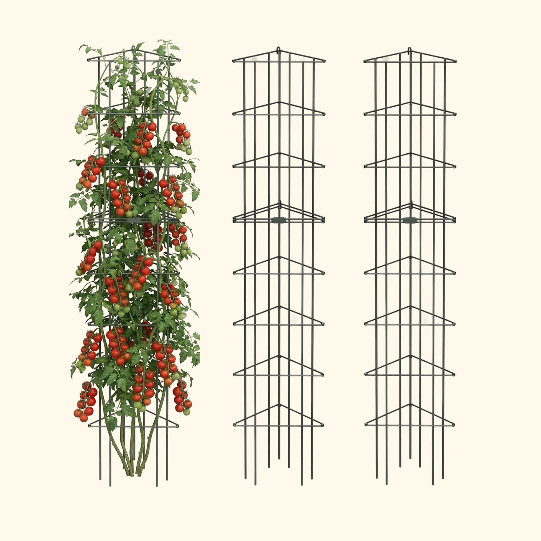 The classic tomato cage shape, but taller. Stack cages to support the tallest tomato plants with strong,