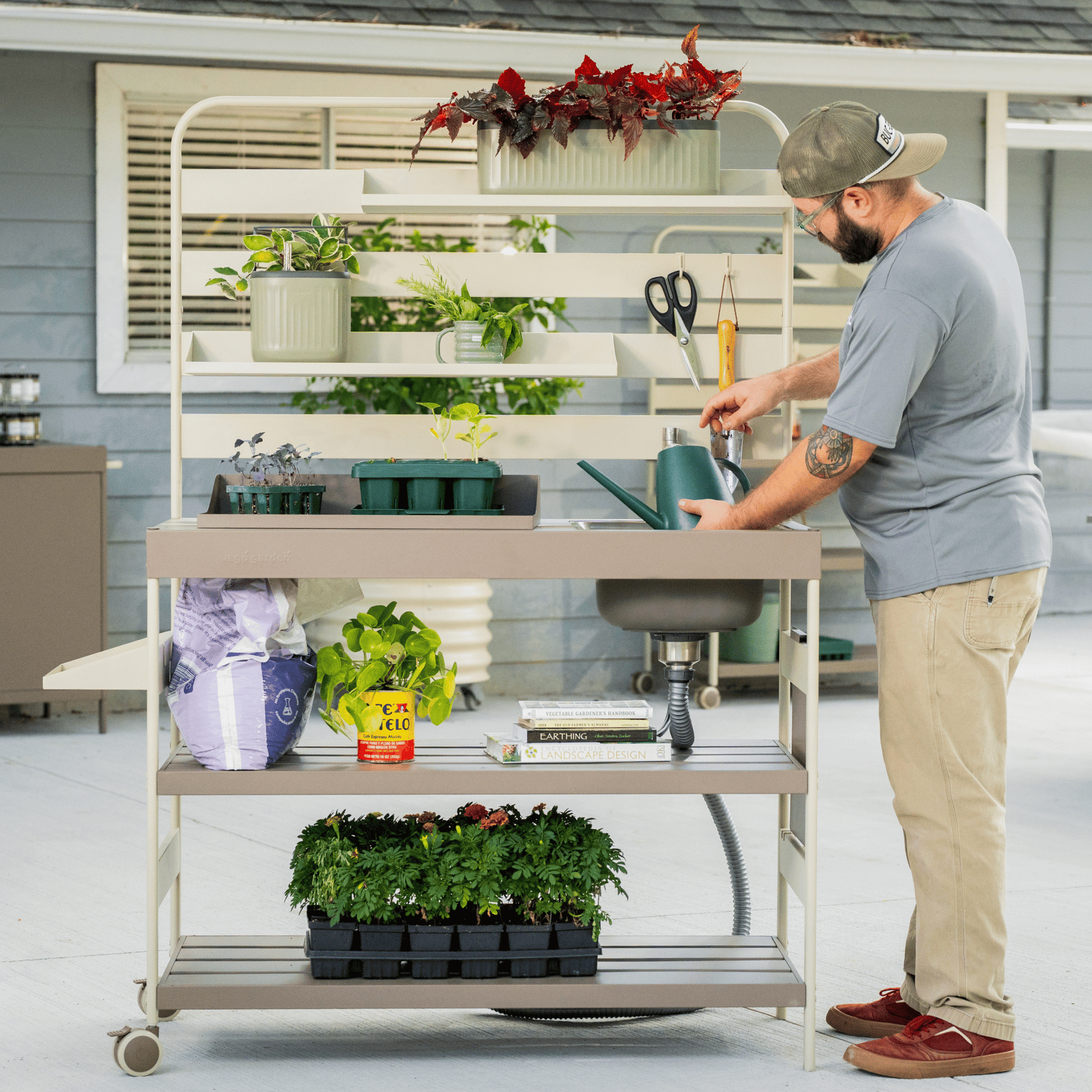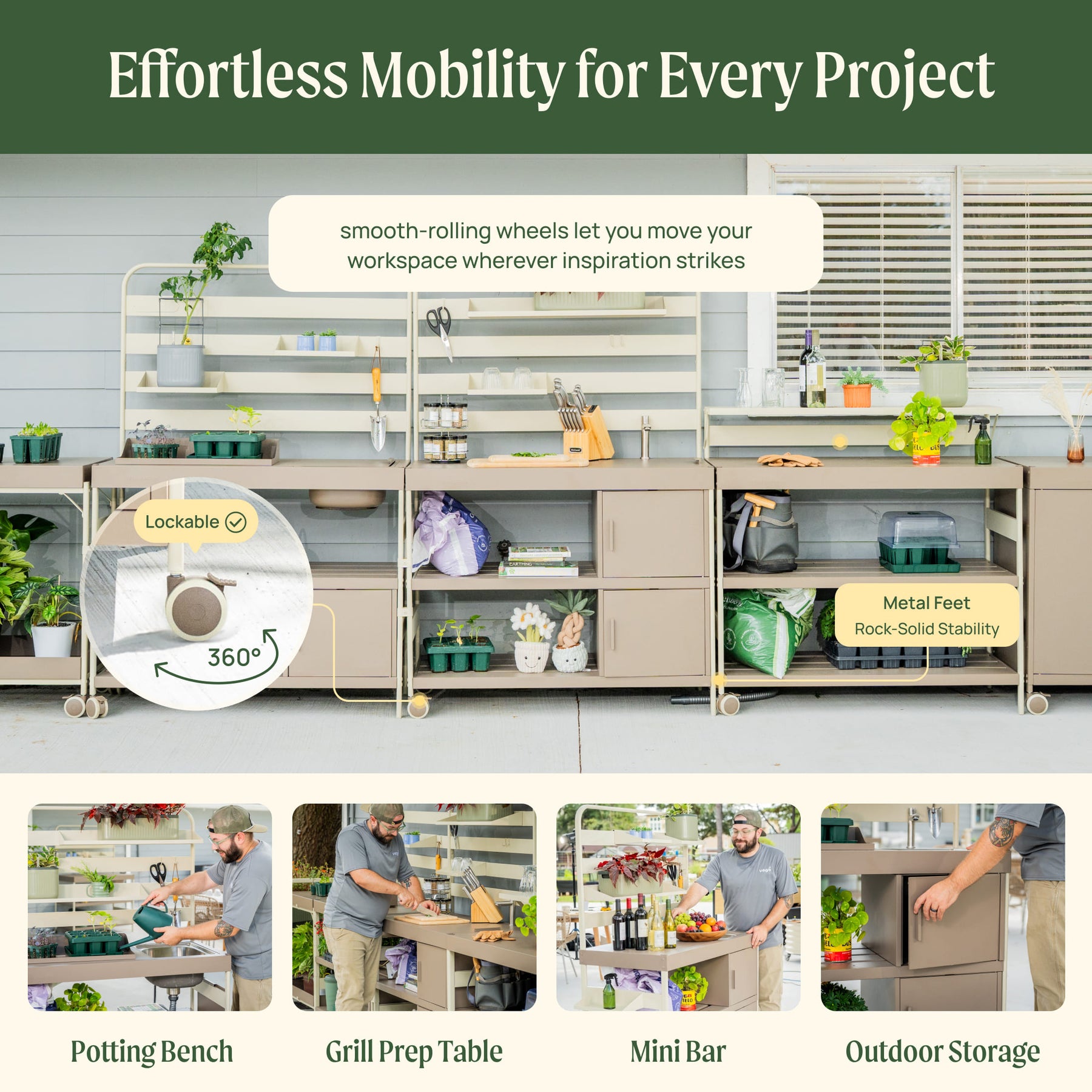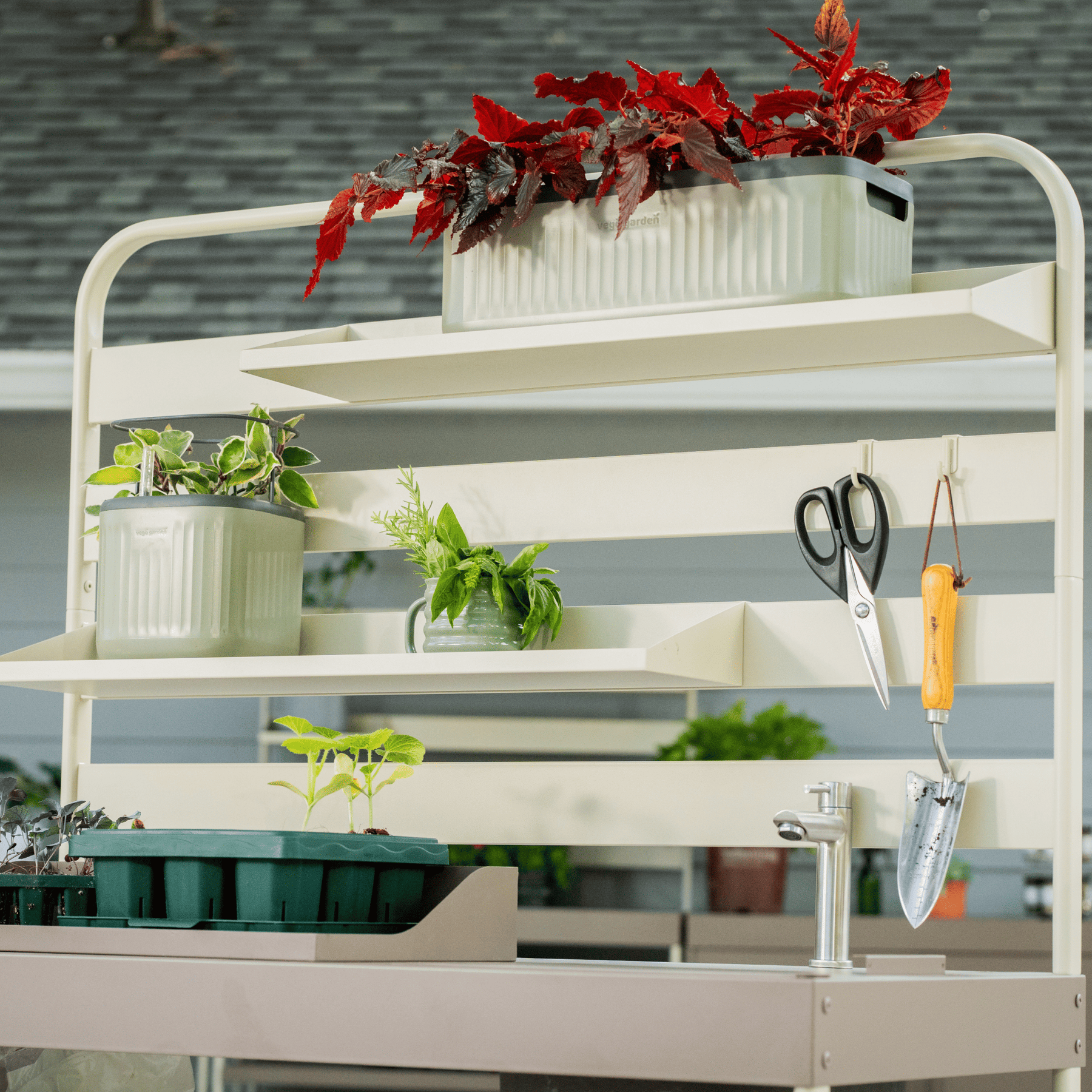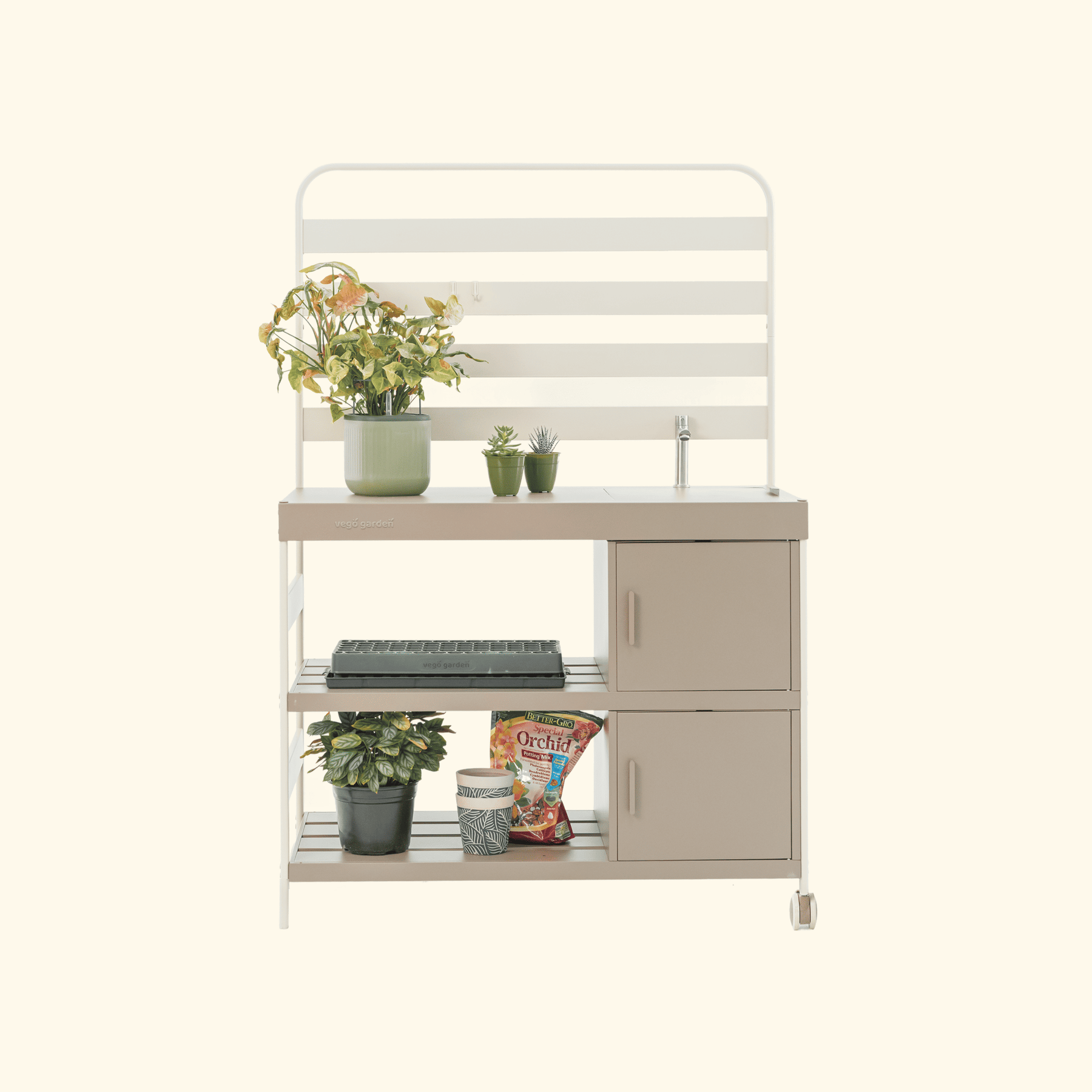 Turn any space into a cohesive setup where planting, storing, and even entertaining all come together with the Potting Bench Series.