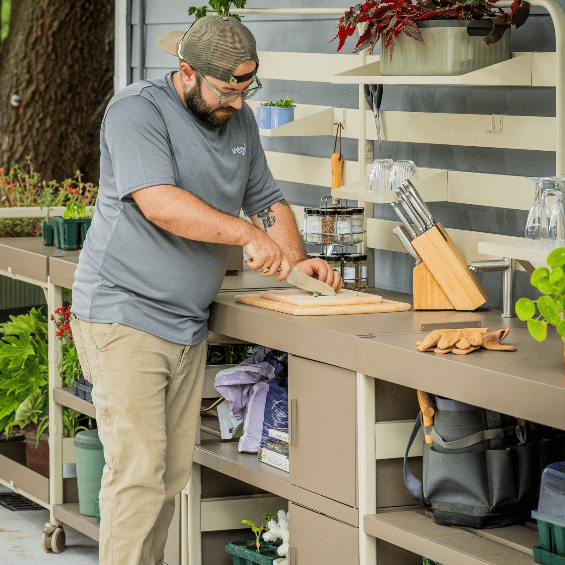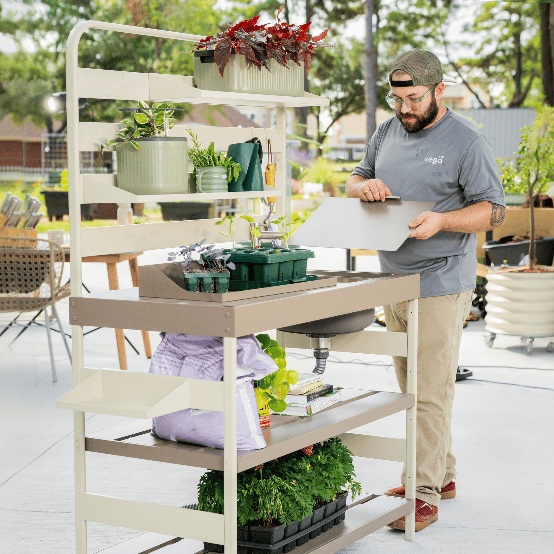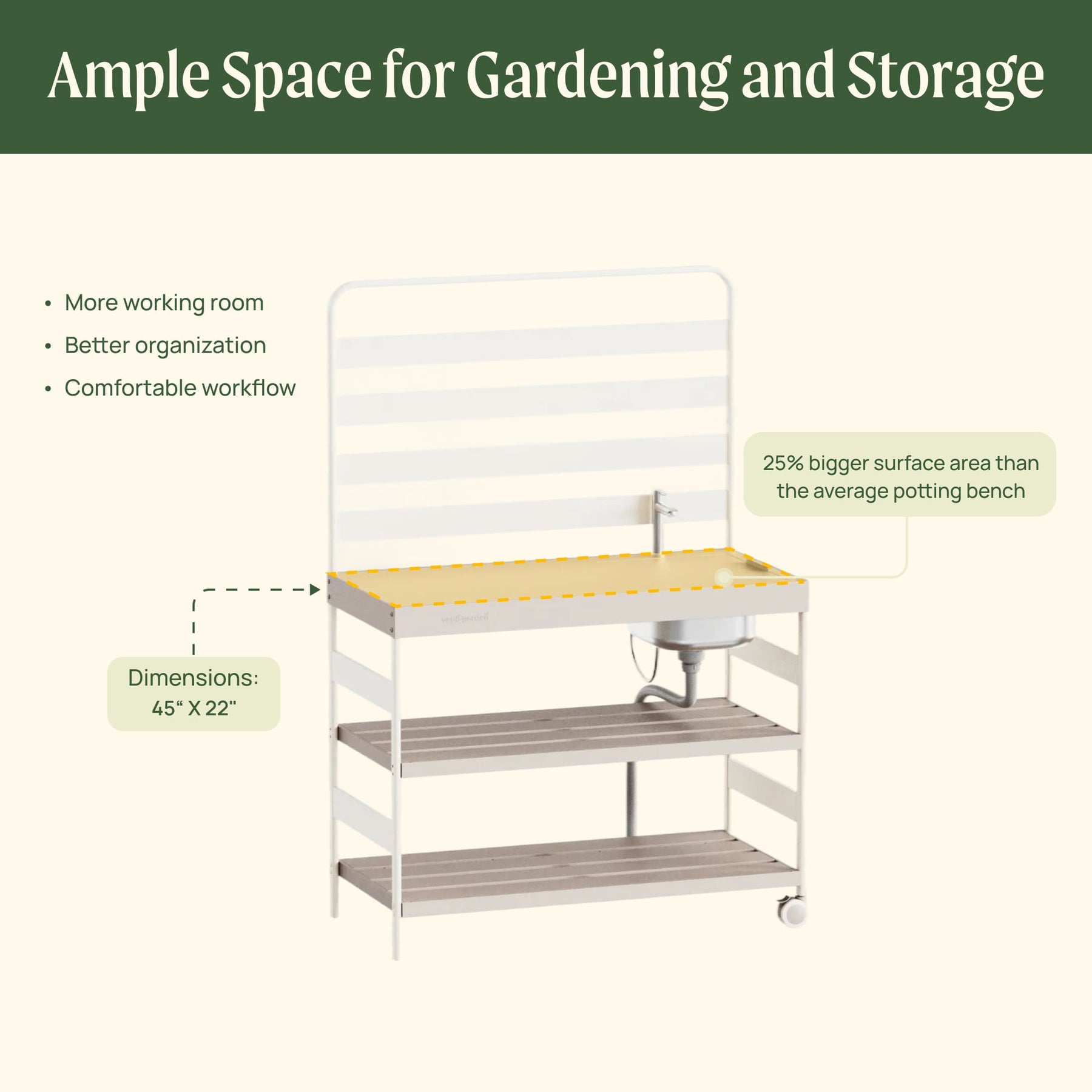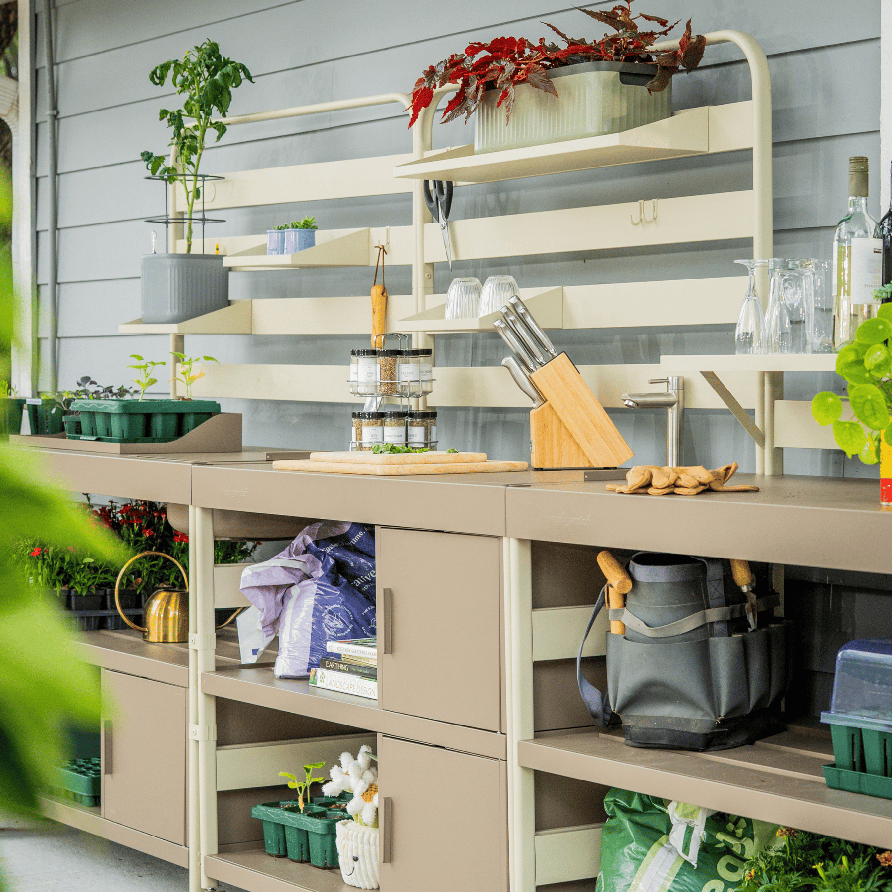 Turn any space into a cohesive setup where planting, storing, and even entertaining all come together with the Potting Bench Series.
