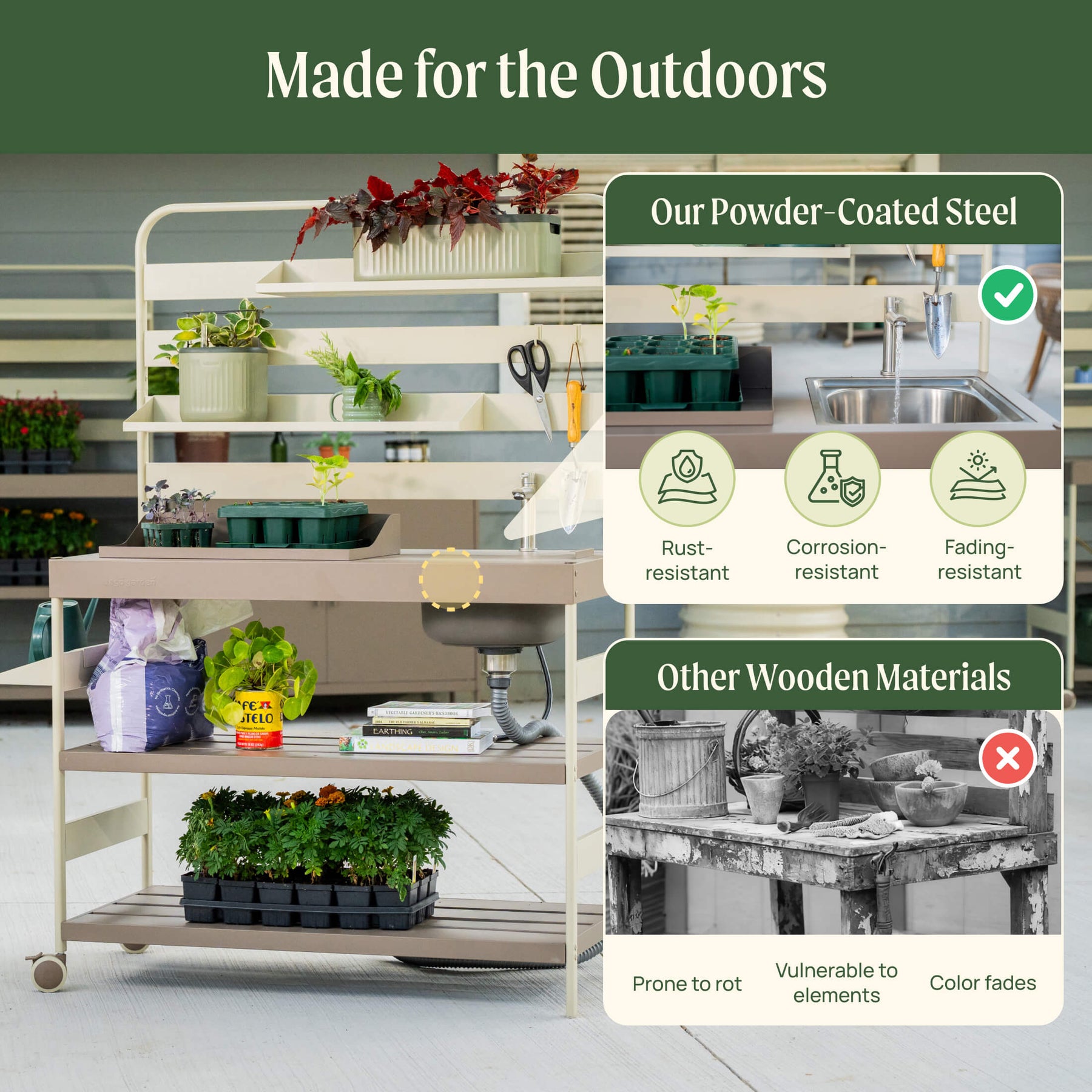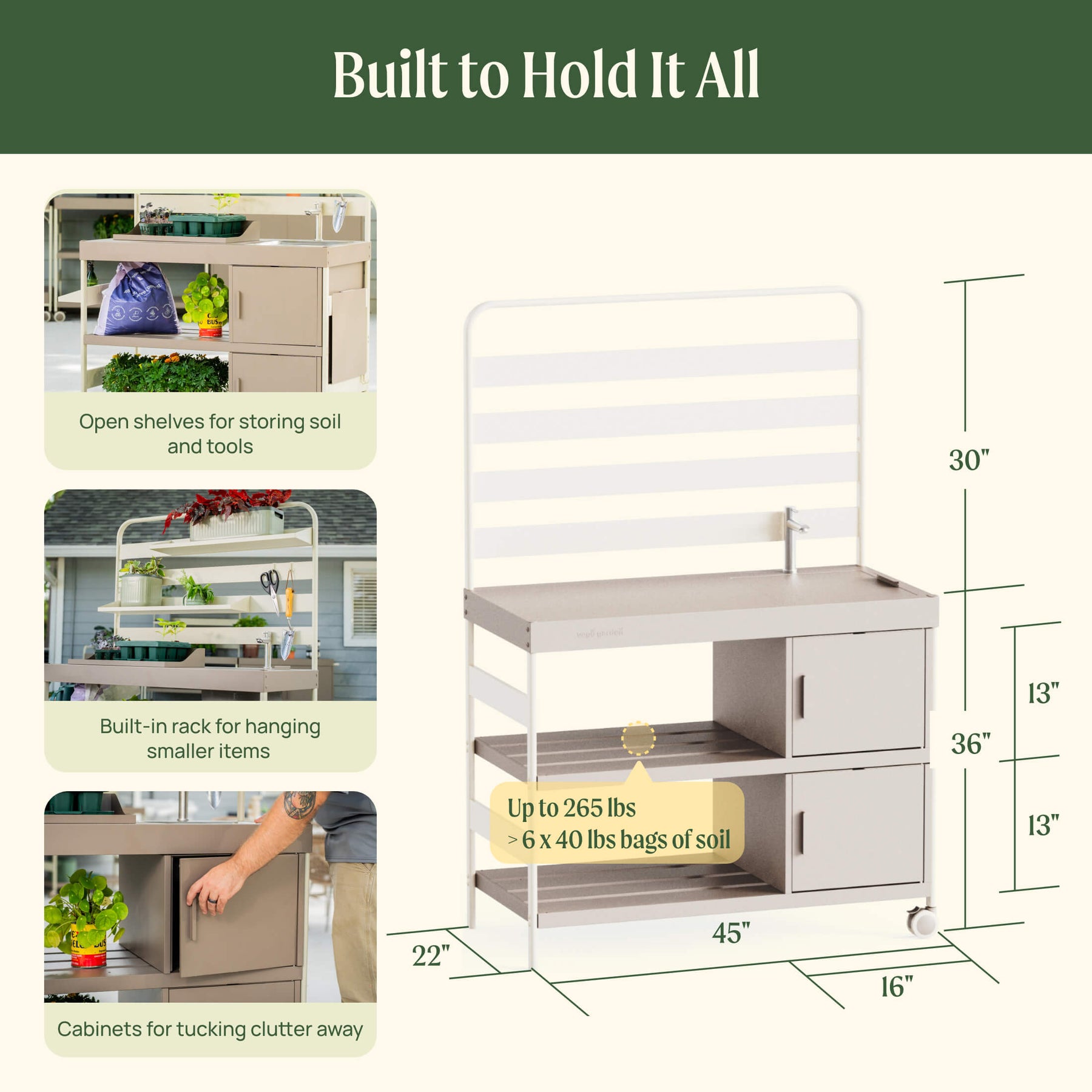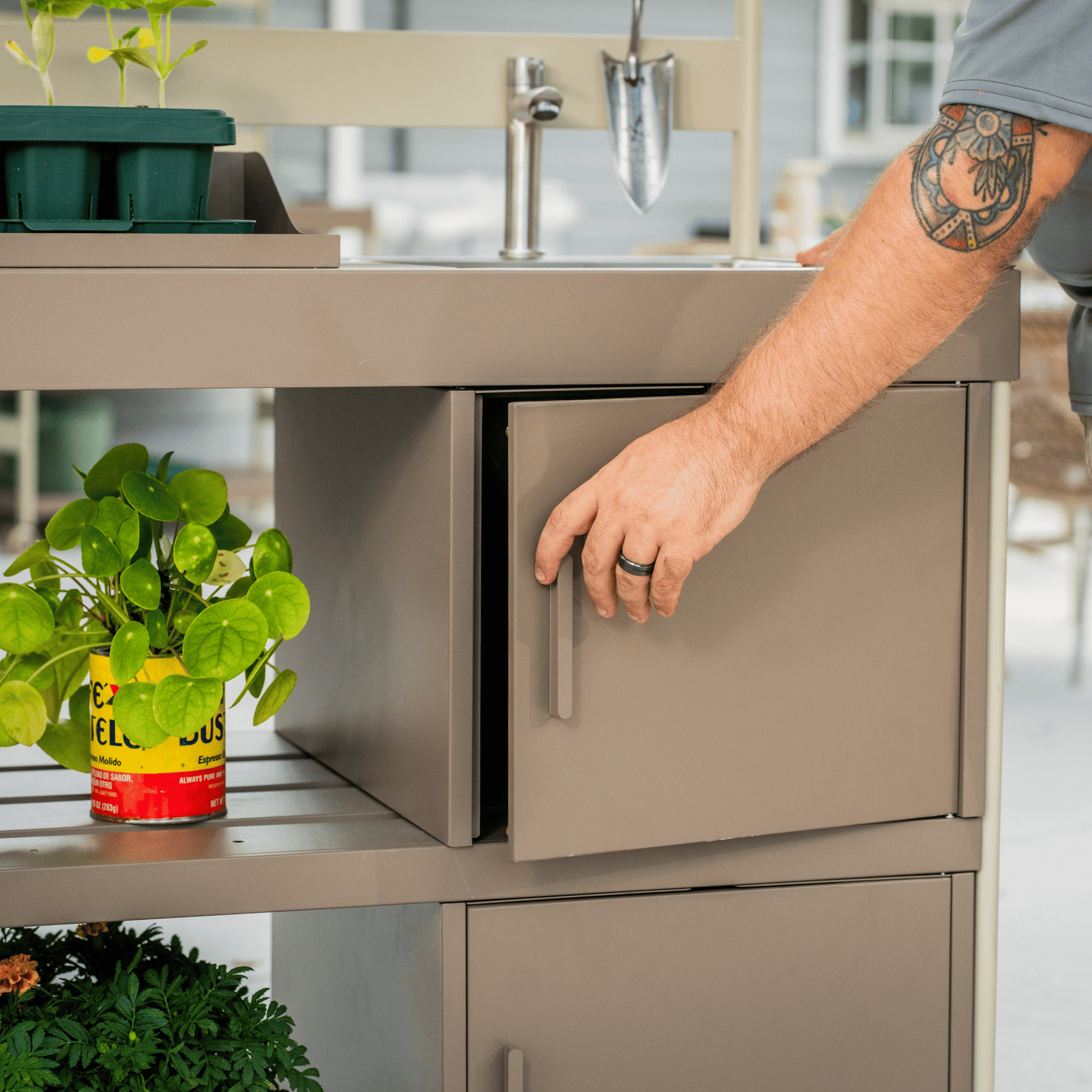 Get the only potting bench that works as hard and looks as good as you do. Wash veggies, re-pot plants, and store your supplies in one hyper-durable package.