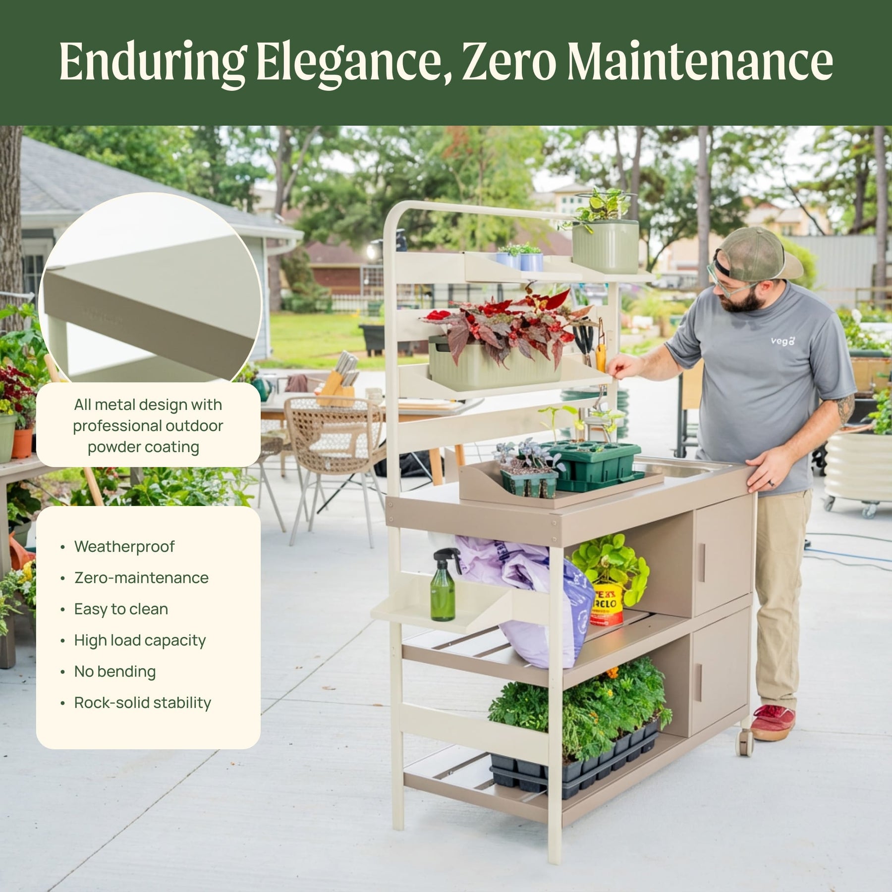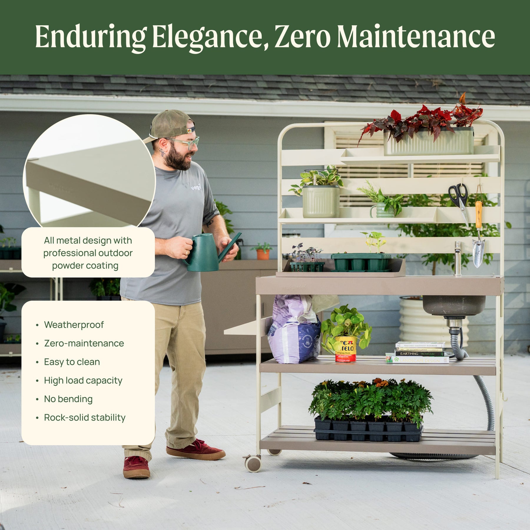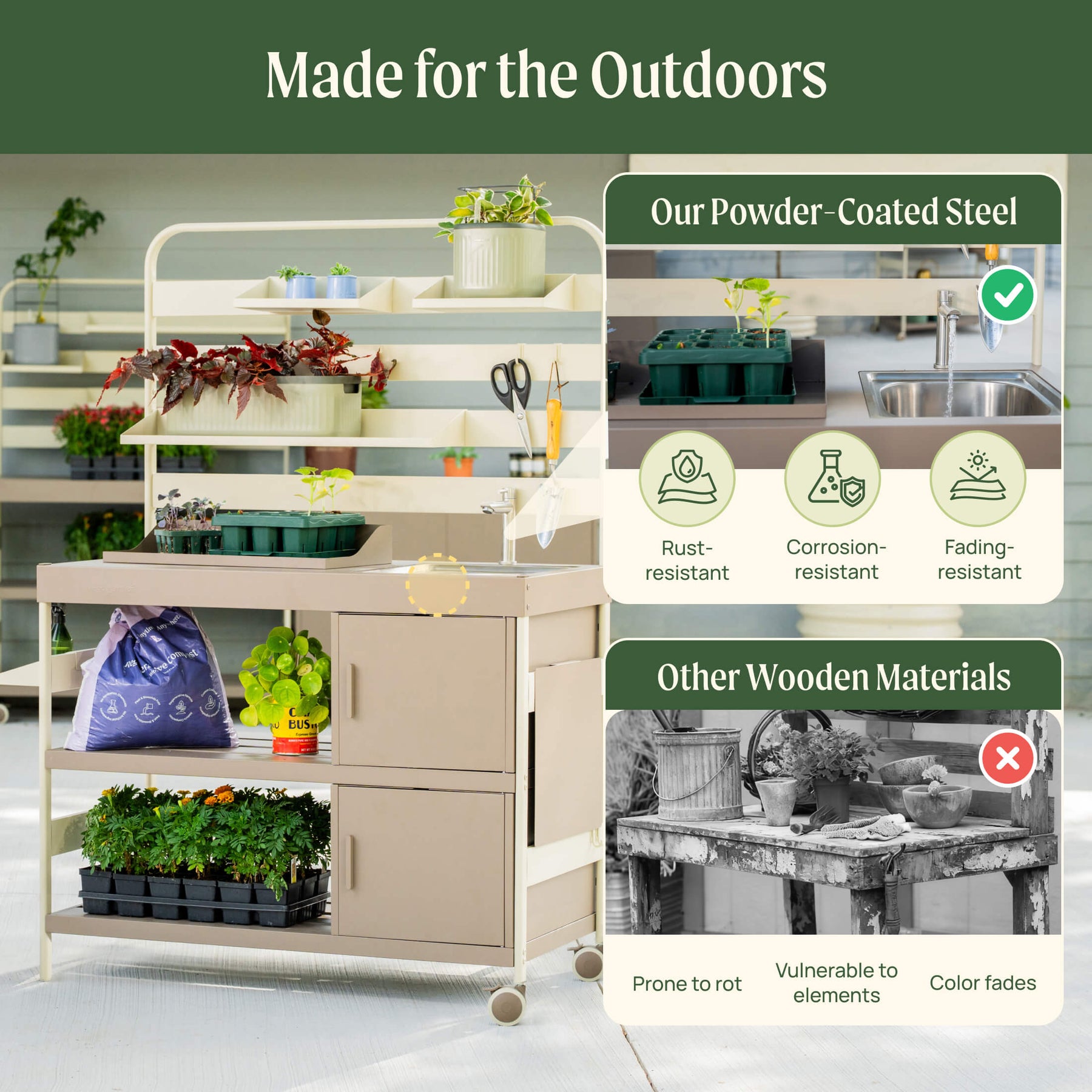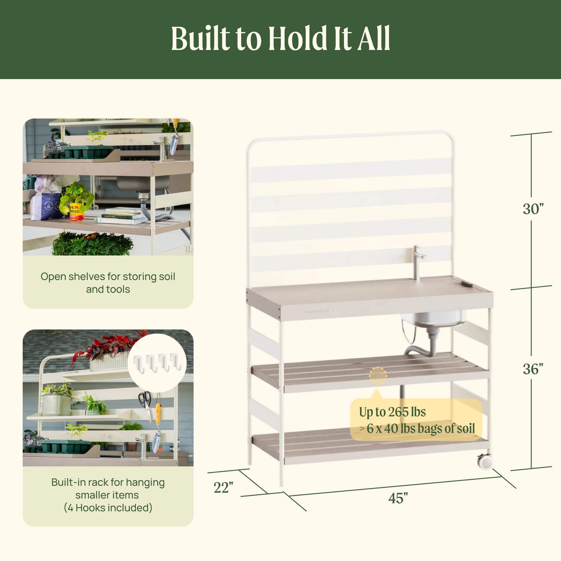 Get the only potting bench that works as hard and looks as good as you do. Wash veggies, re-pot plants, and store your supplies in one hyper-durable package.
