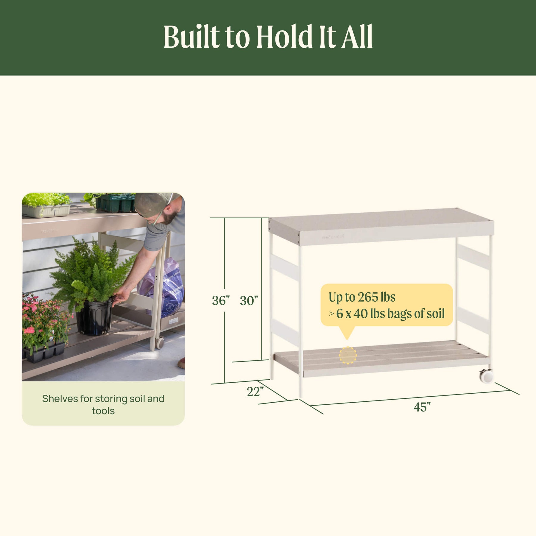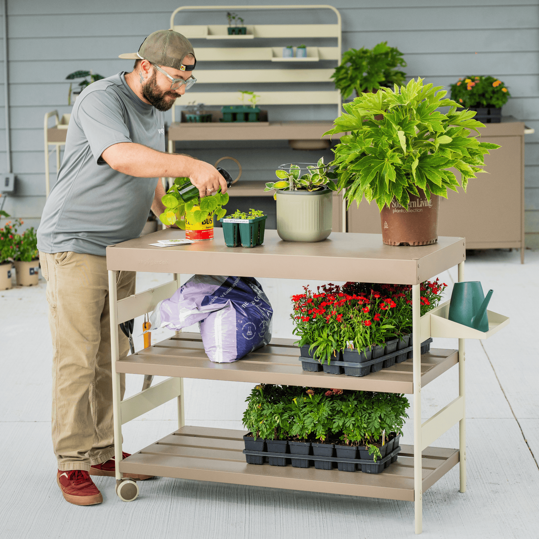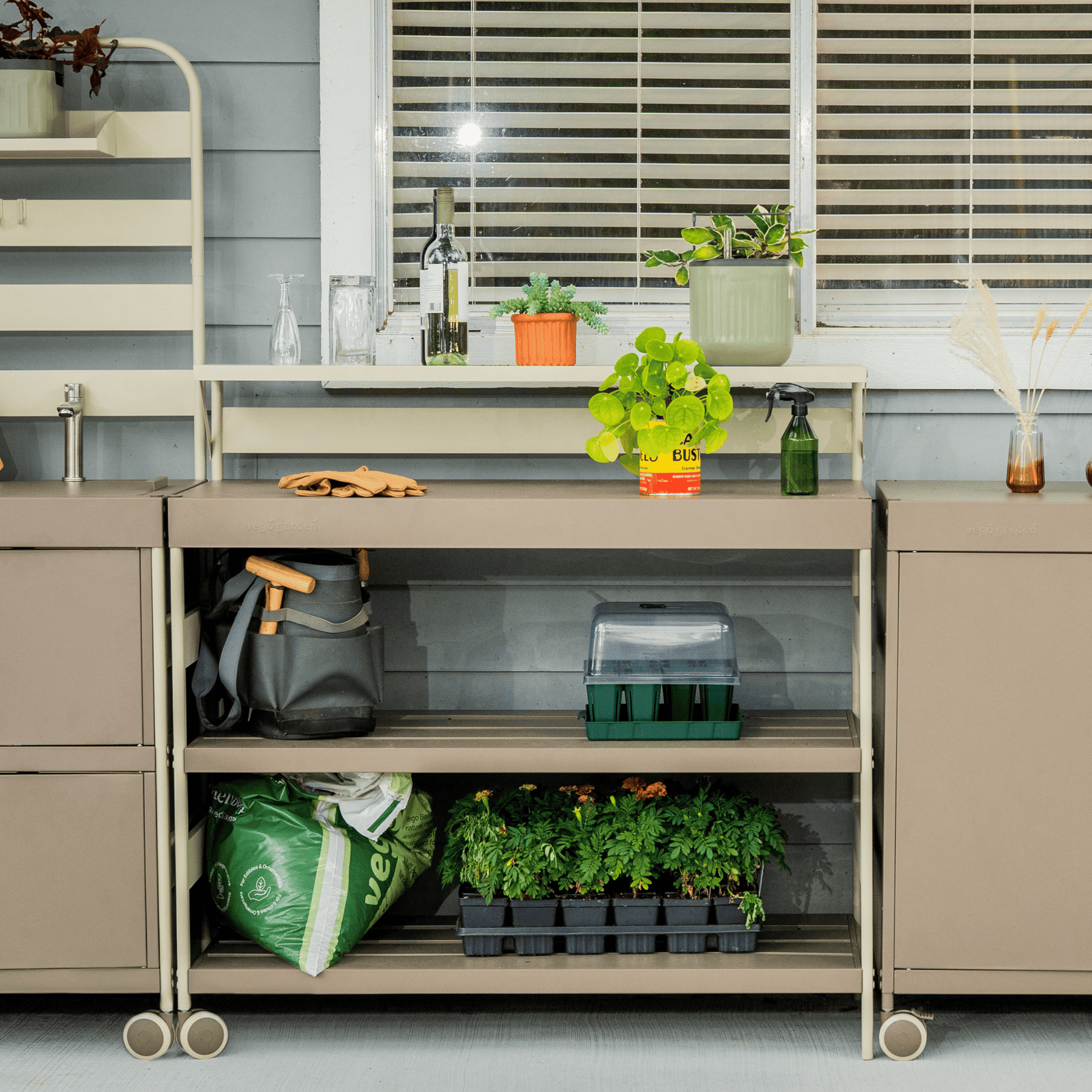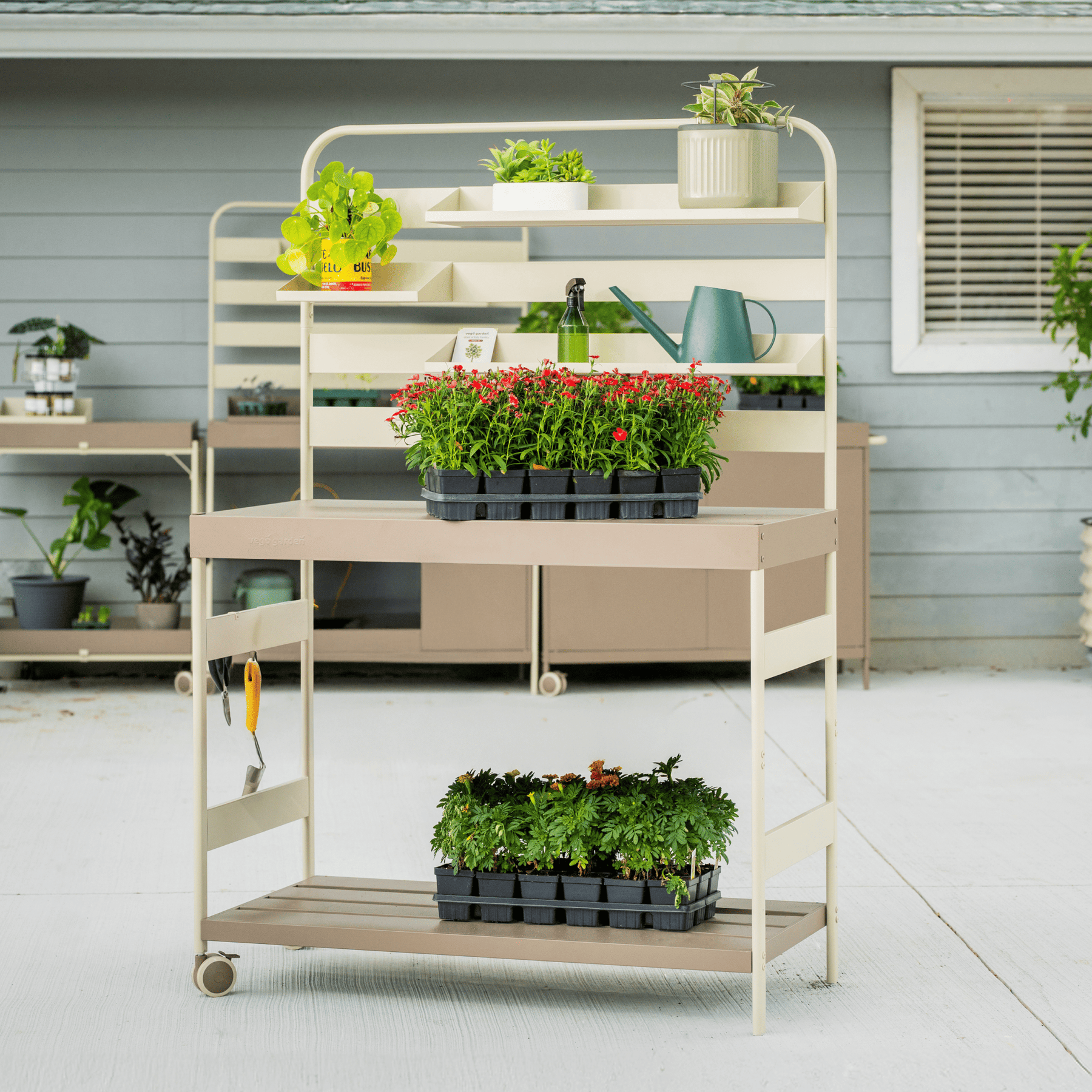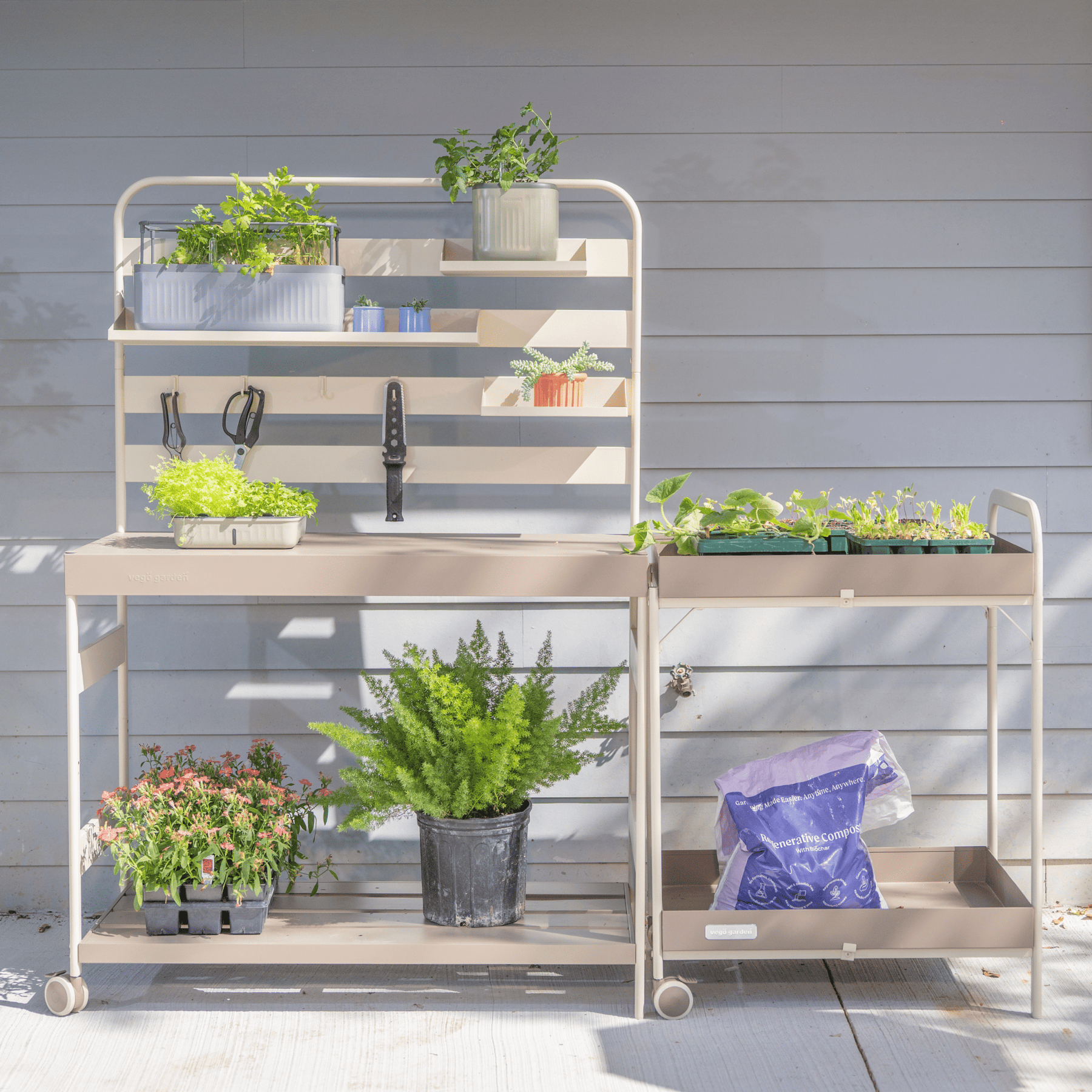Turn any space into a cohesive setup where planting, storing, and even entertaining all come together with the Potting Bench Series.