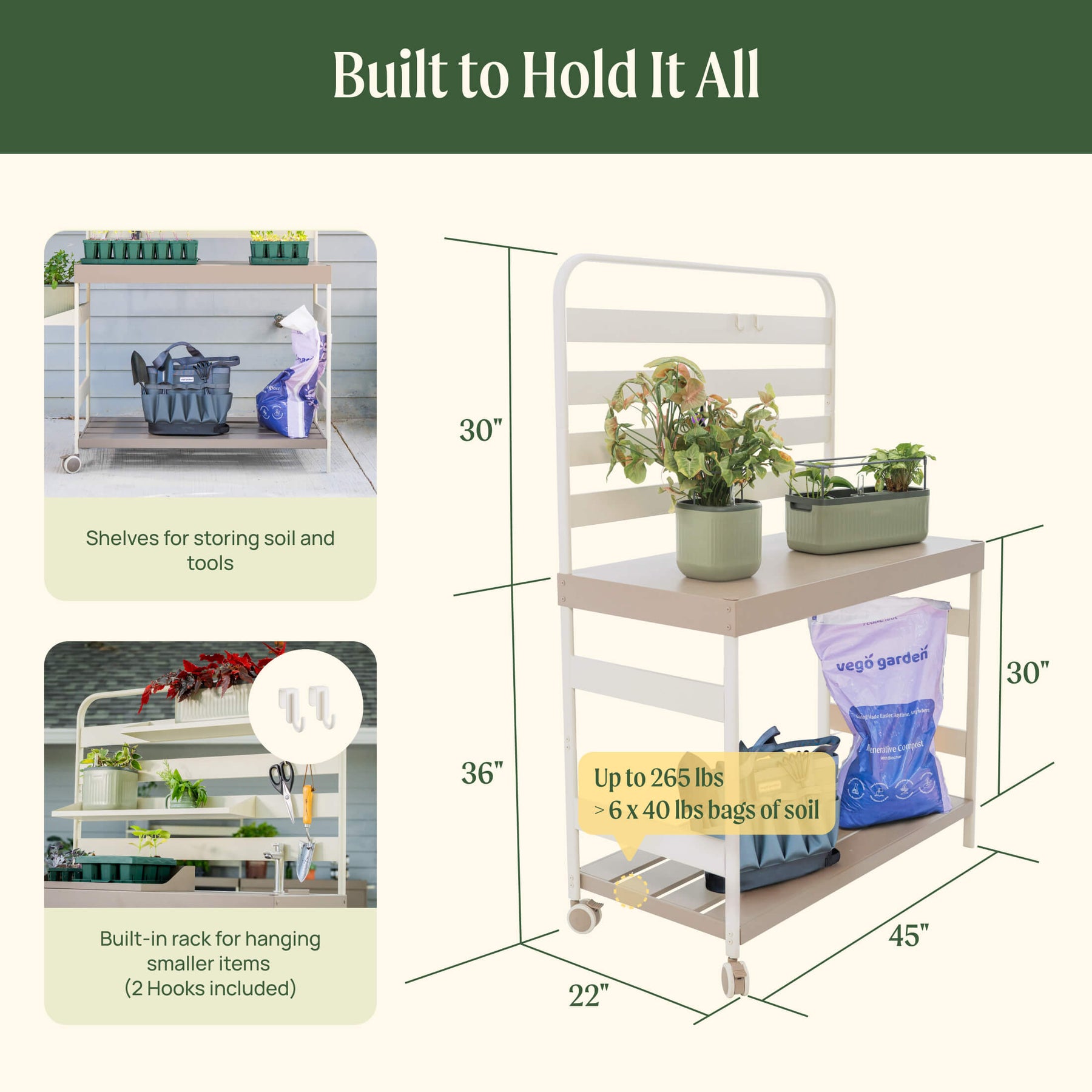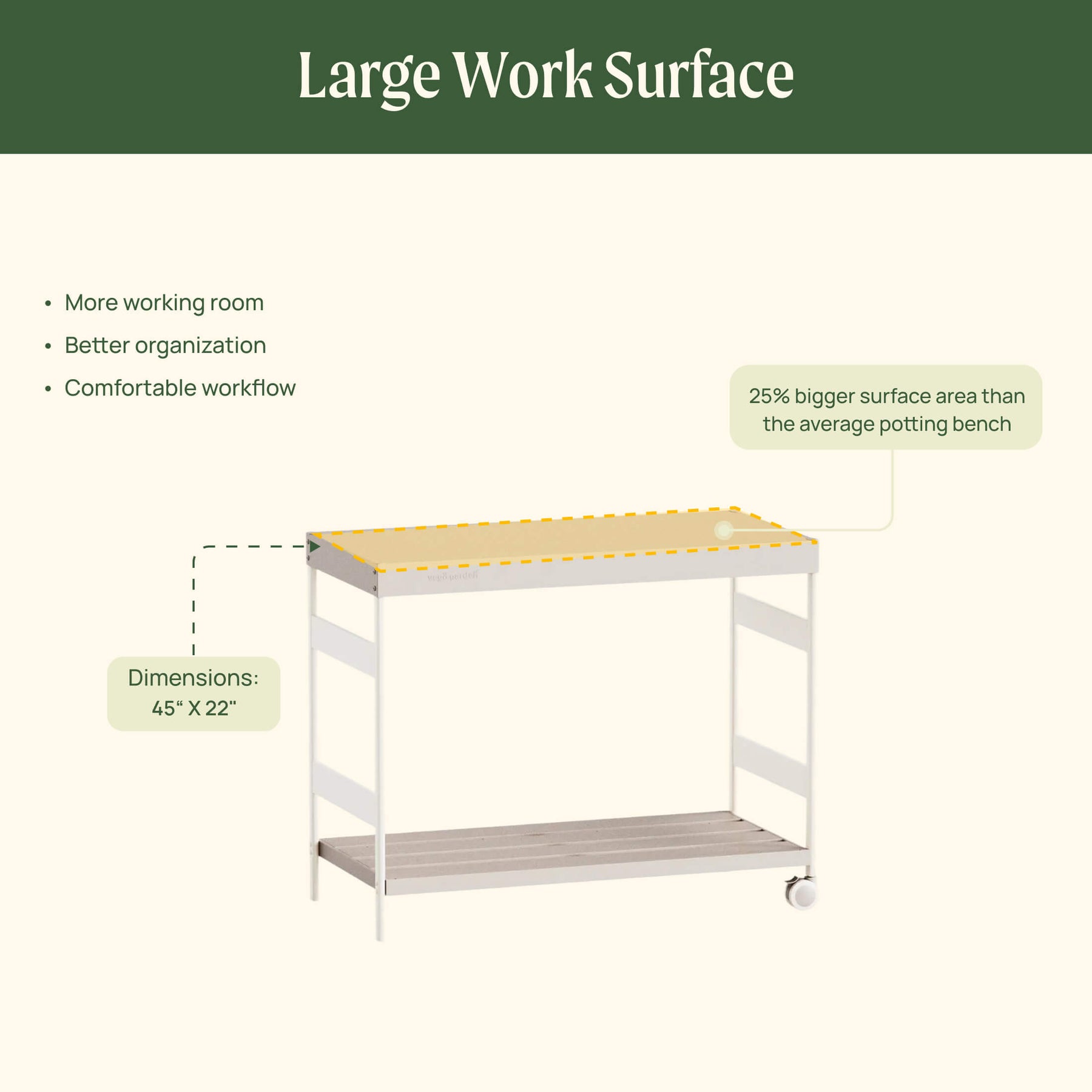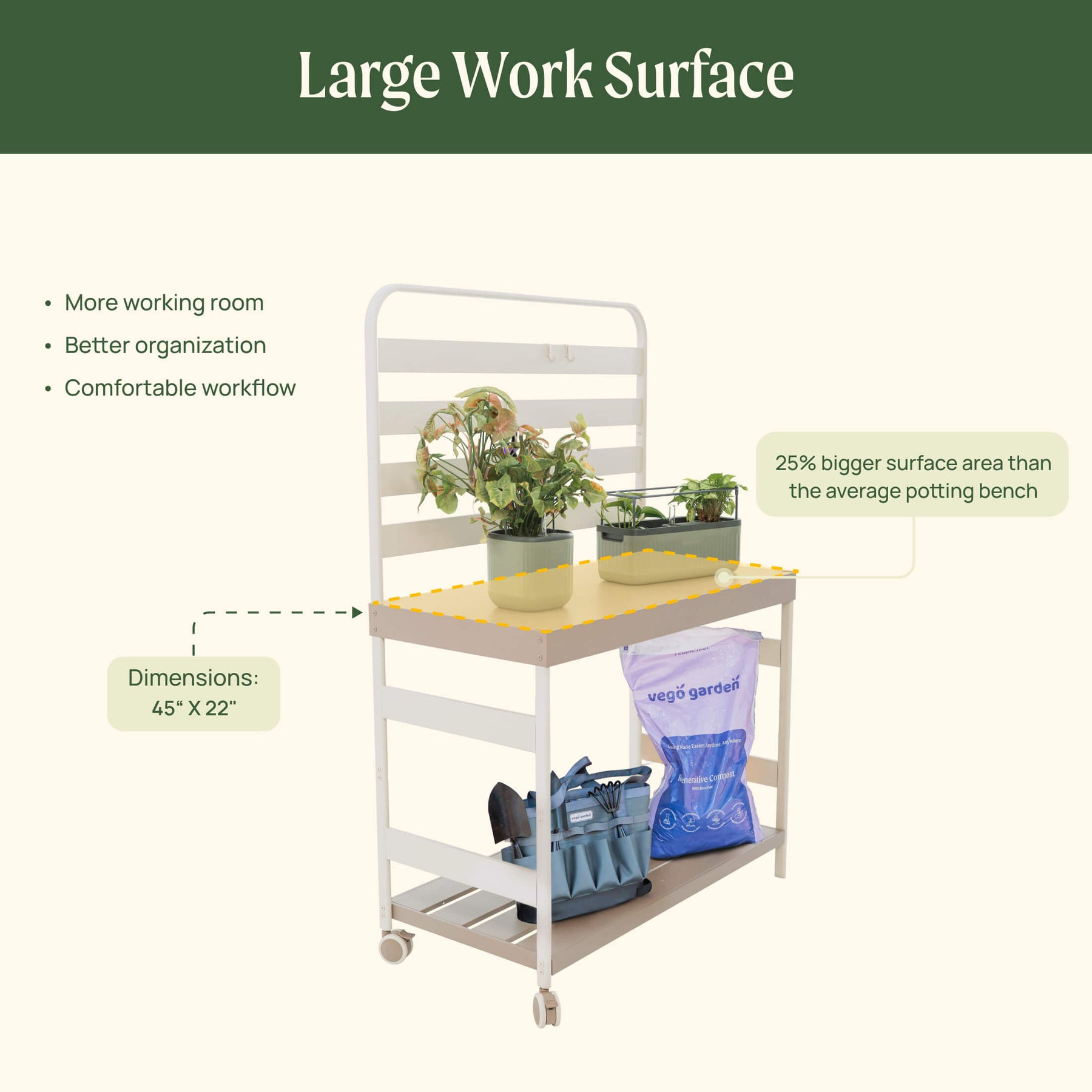 Vego Garden ImageLarge Worksurface: Wide, flat surface 25% larger than the average workbench for all your gardening tasks.