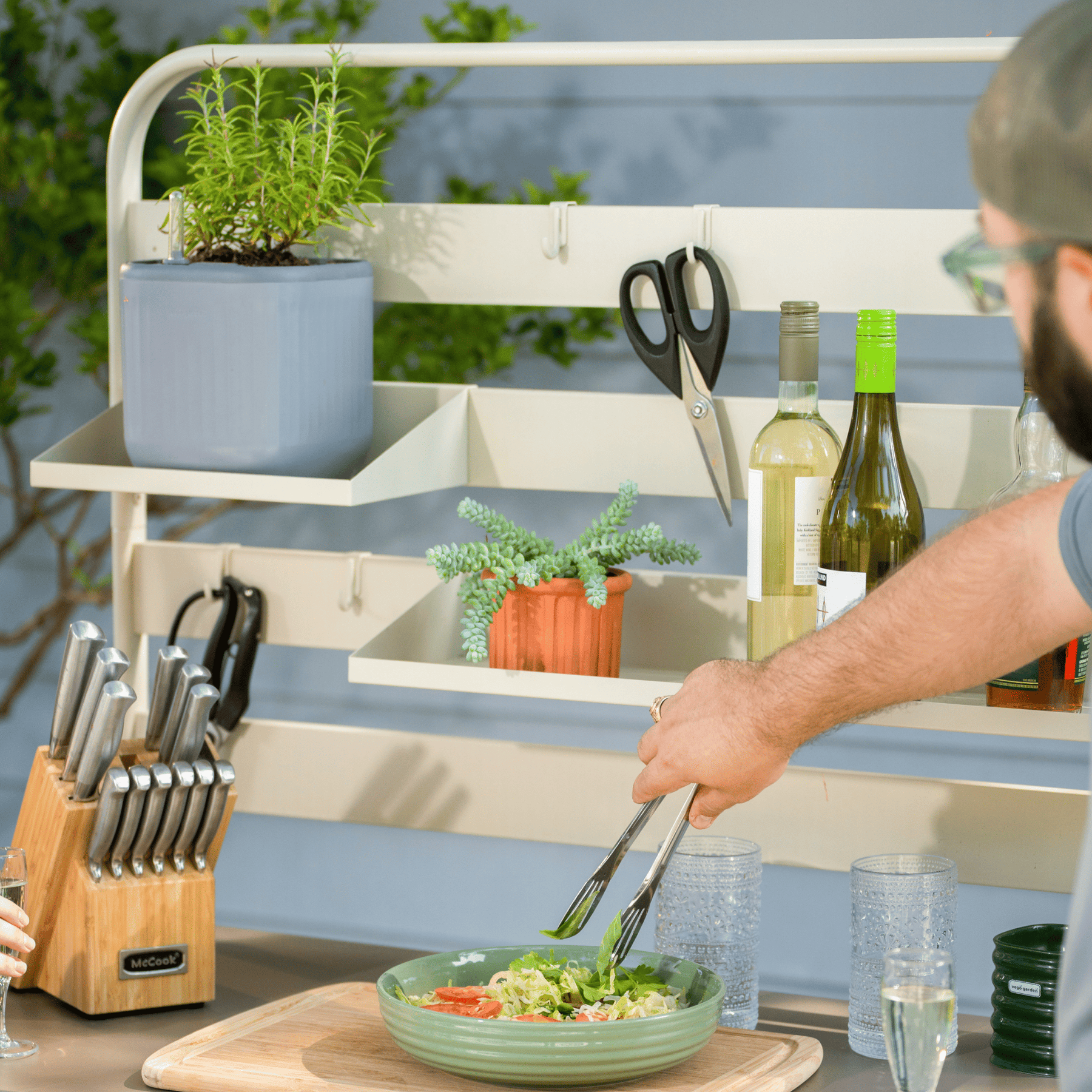 All shelves are crafted from 120g galvanized steel and coated with a premium outdoor powder finish that resists rust, corrosion, and fading.