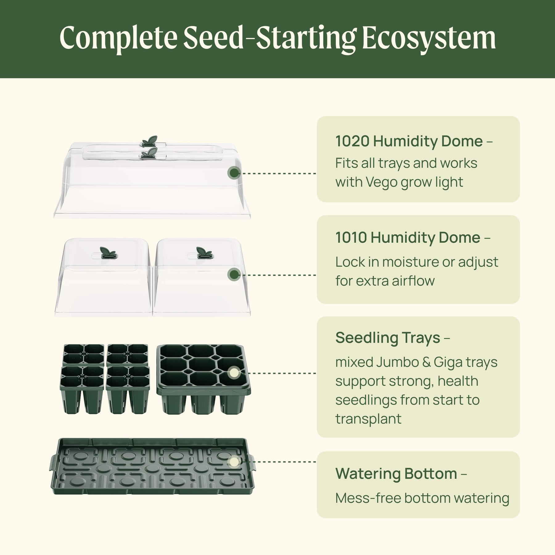The extra-large seedling trays give roots space to develop, while the domes leave room for sprouts to rise toward the light.
