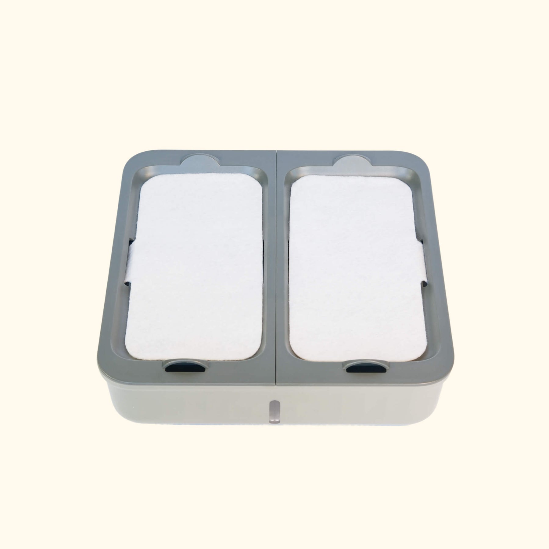 Minimal cleaning is needed since the mats are disposable. Just compost the used mat, rinse the tray, and insert a new one.