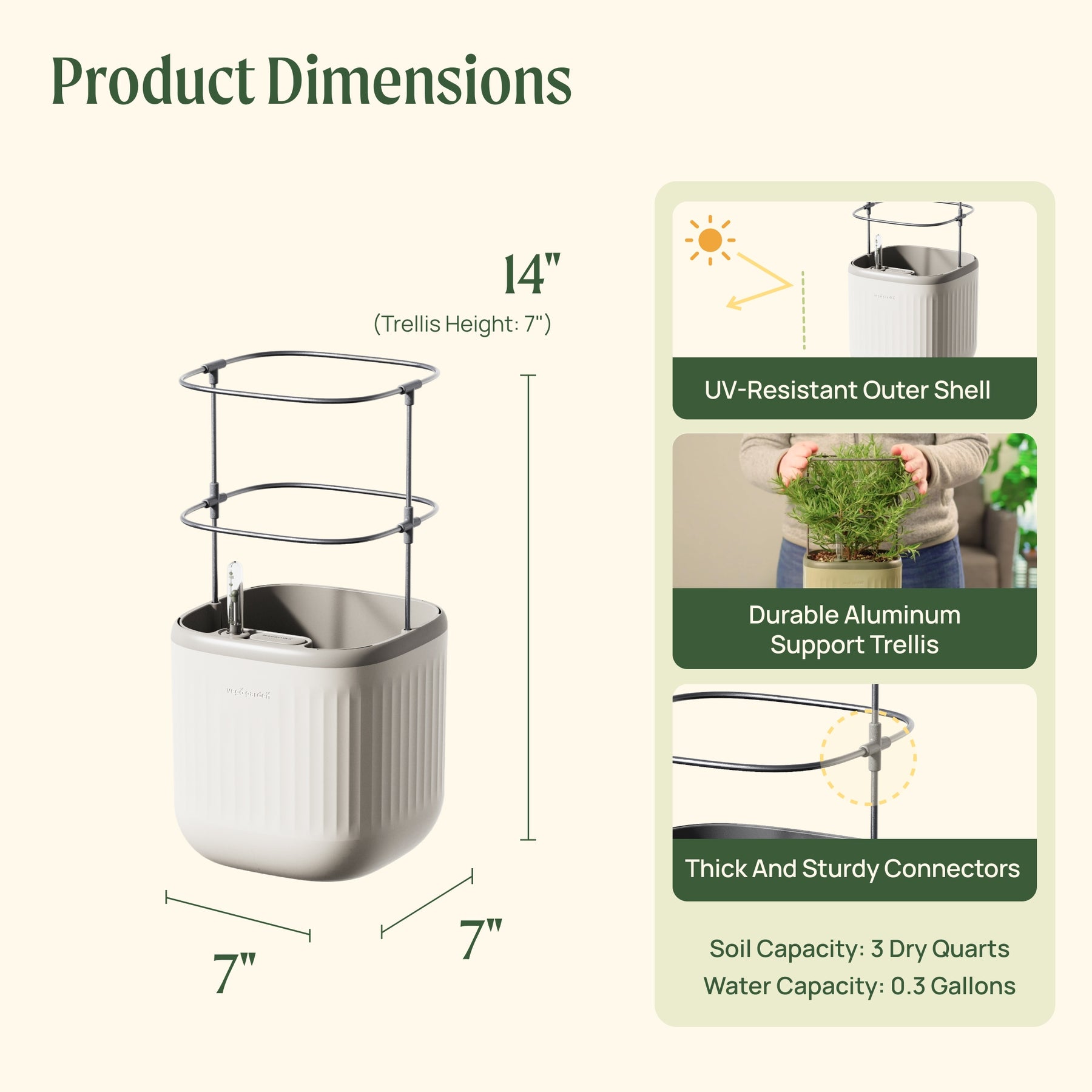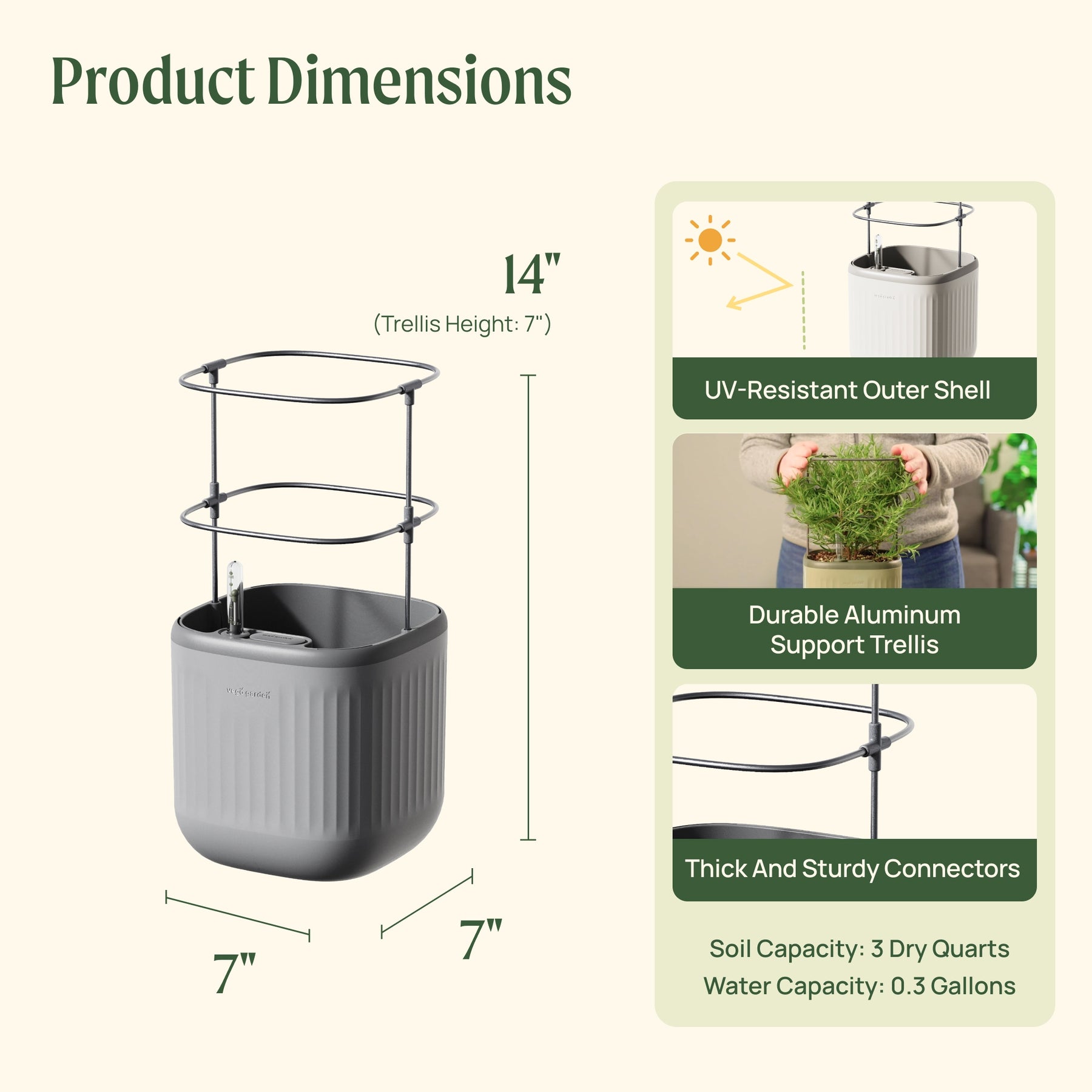 With a curved trellis designed specifically for this planter, your plant can grow to its fullest potential!