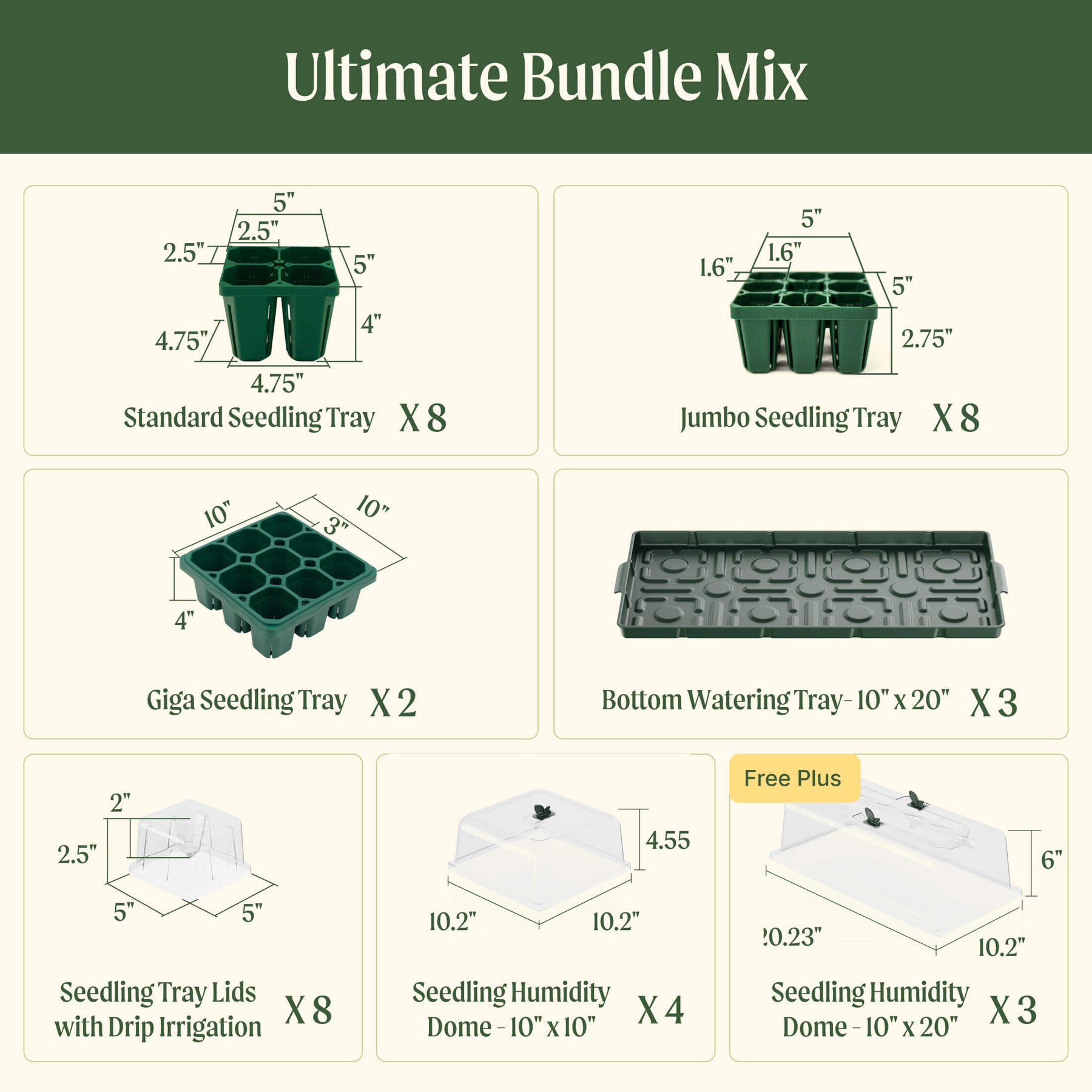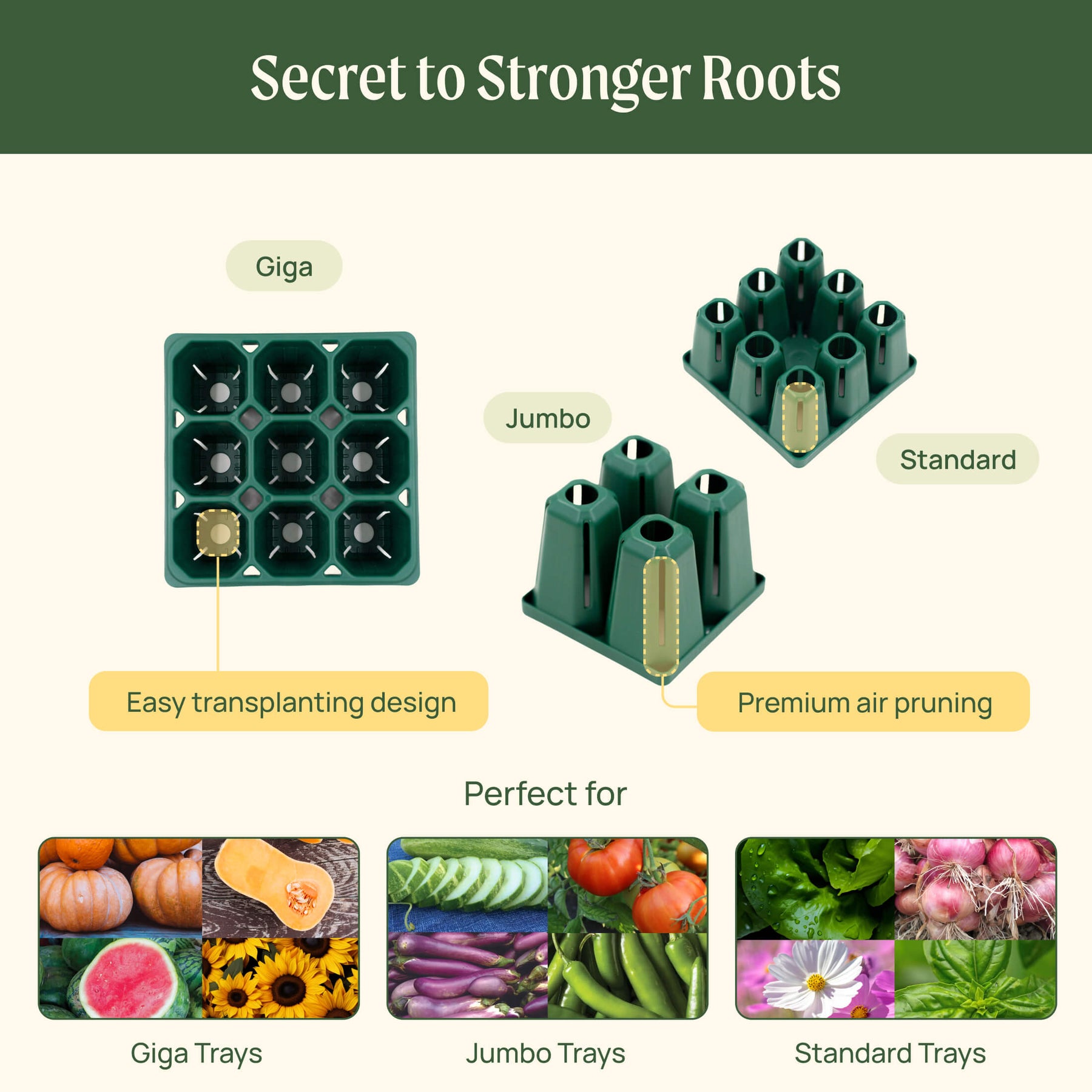 From the tiniest herbs to the largest squash, every plant has unique needs. This bundle includes our full range of tray sizes to provide the perfect environment for every stage of growth.