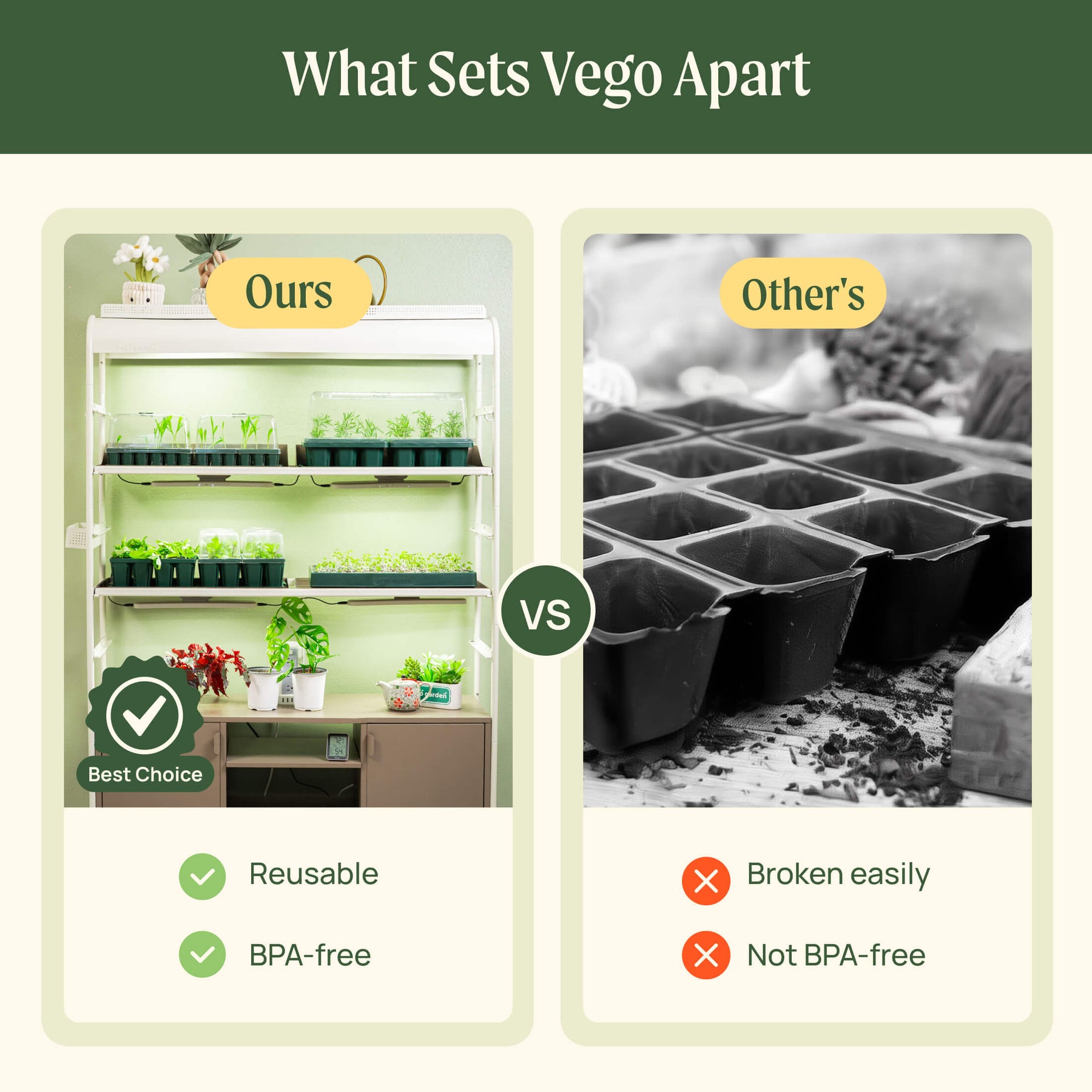 The Seedling Trays and Bottom Watering Trays are made from thick, BPA-free polypropylene with UV stabilizers to prevent warping, while the Humidity Domes are crafted from food-safe PET that stays clear and crack-resistant.
