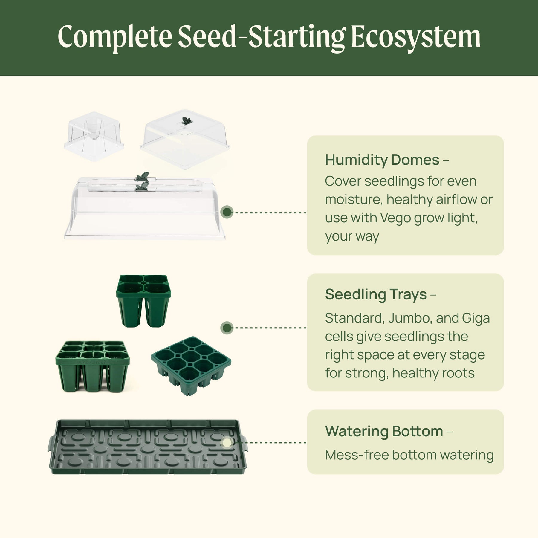 A tray for every stage gives roots the space they need, while a dome for every size protects sprouts as they grow.