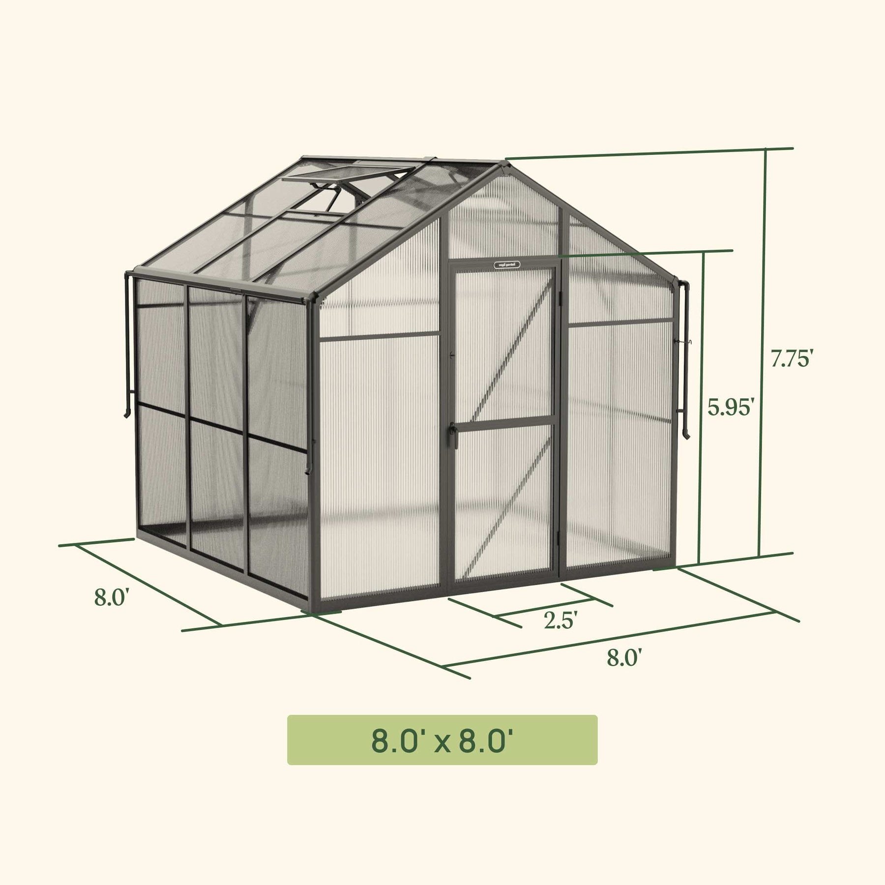 Other leading greenhouses use steel or wood frames that rust, rot, and ruin their products. Our aluminum frame is thicker, stronger, and will never rust, giving your greenhouse more than a decade of elegant strength.