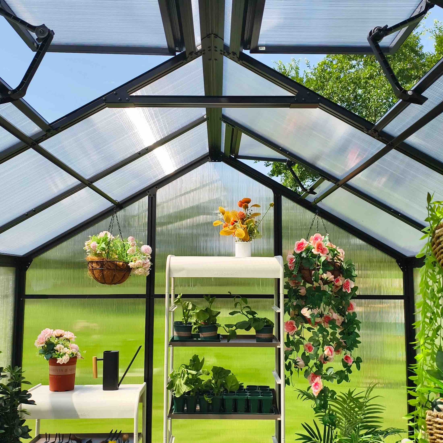 Features easy-to-open roof vents for simple, direct control over your greenhouse’s essential airflow